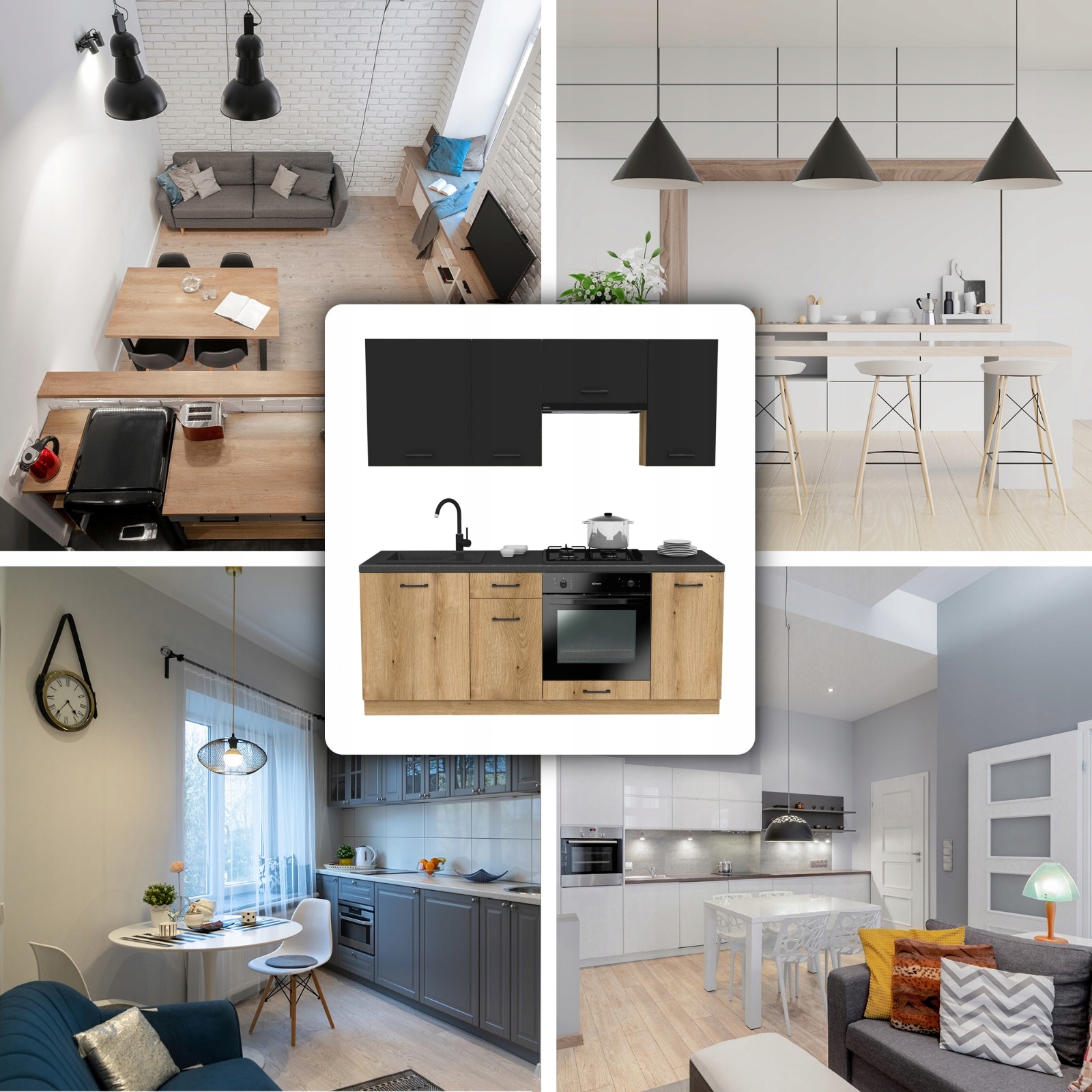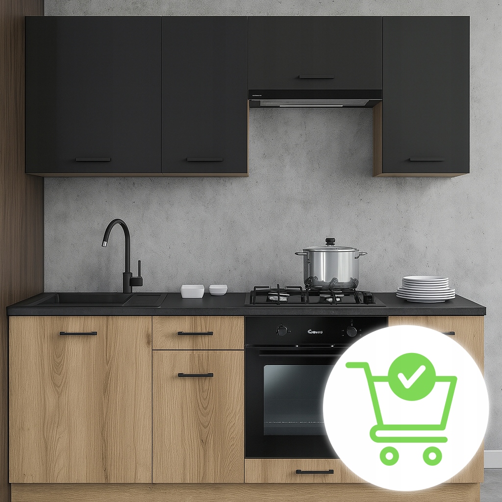 ✨ Meble Kuchenne Zestaw Mebli Na Wymiar Modułowe Dąb Evoke/Czarny MODERN 200