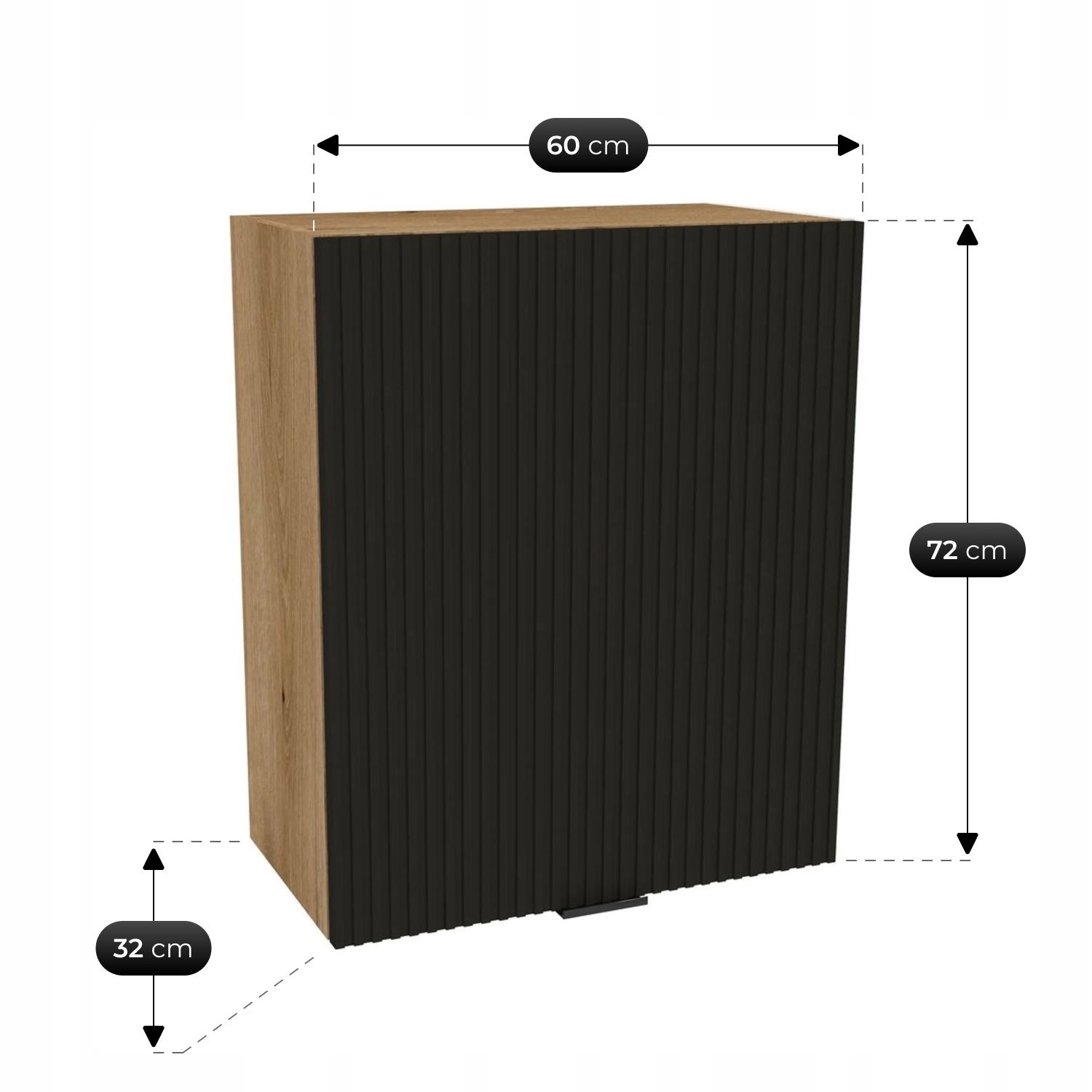 Fronty wykonane są z płyty MDF co zapewnia trwałość oraz nowoczesny wygląd. Korpusy to solidna płyta laminowana odporna na wilgoć i codzienne użytkowanie.