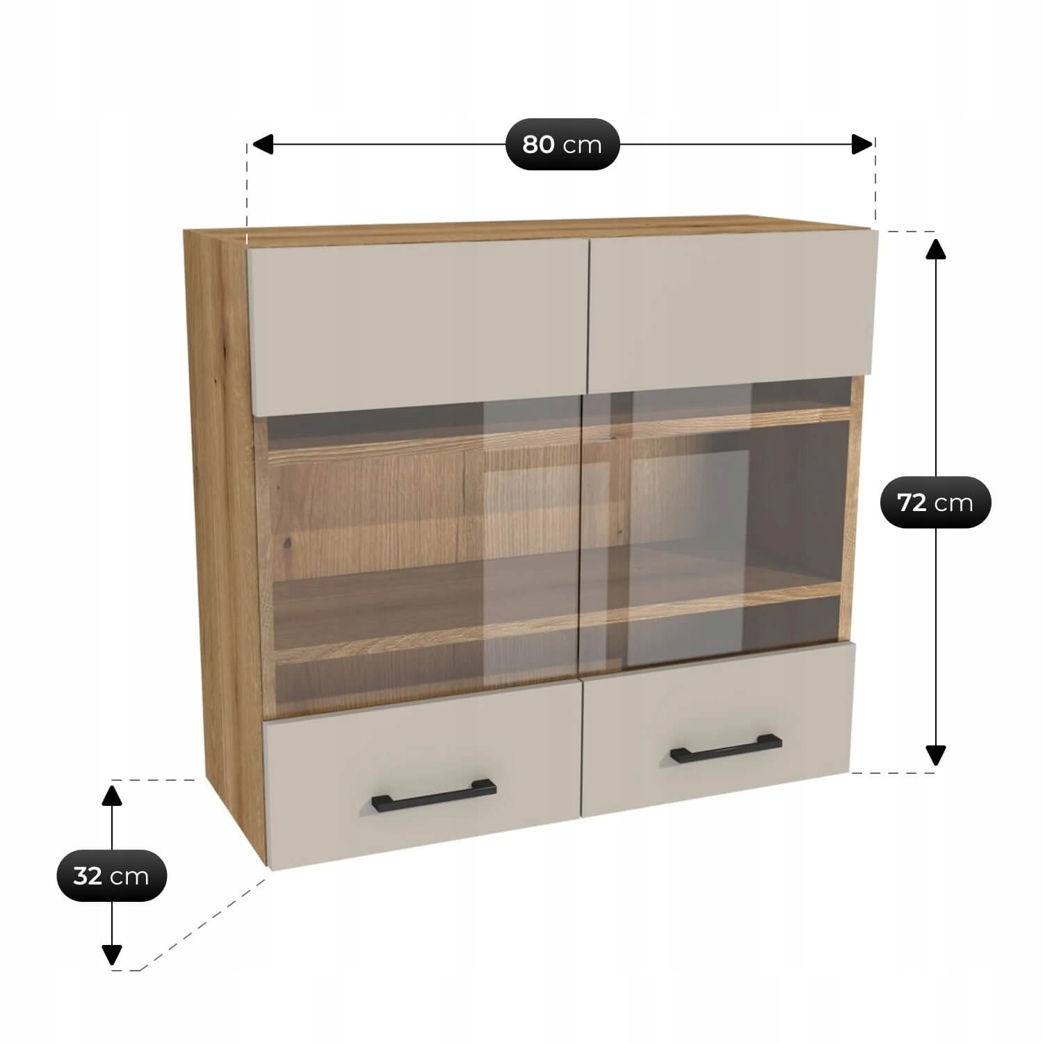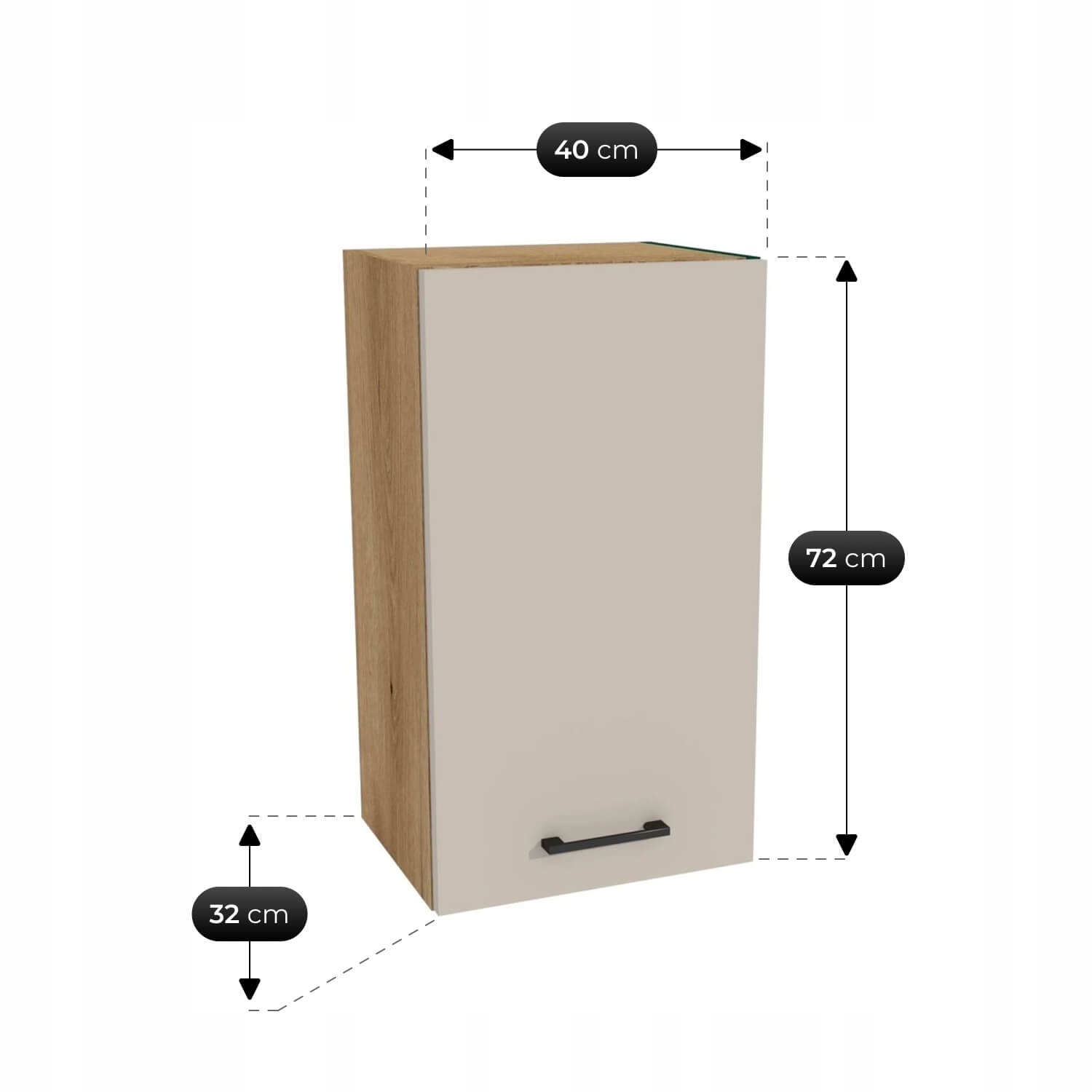 Szafki dolne i górne w praktycznym układzie – zapewniają wygodne przechowywanie naczyń, garnków i artykułów spożywczych w zasięgu ręki.