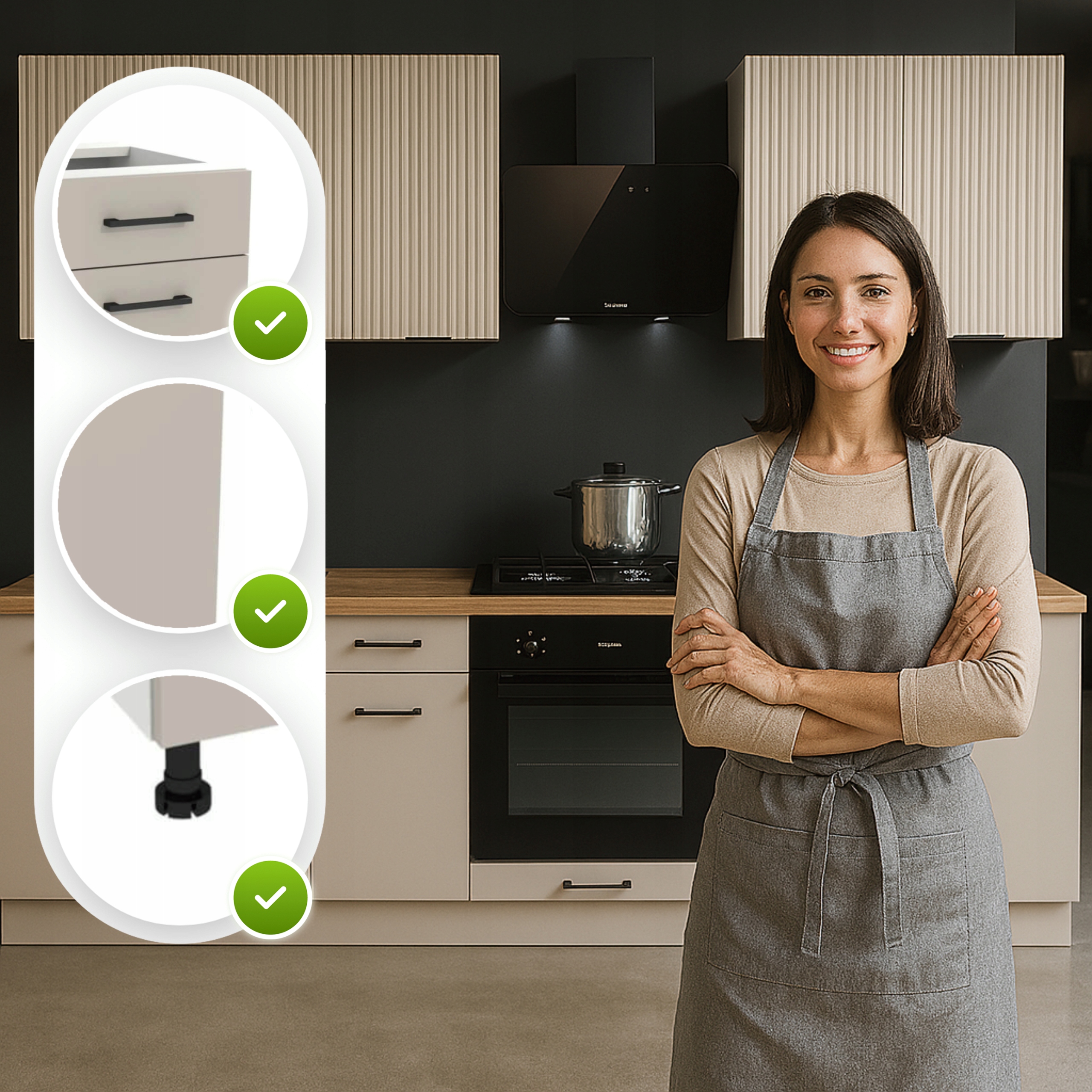 Uwaga! Zestaw nie zawiera blatu ani zlewu – to daje Ci pełną swobodę wyboru materiałów i wykończenia.