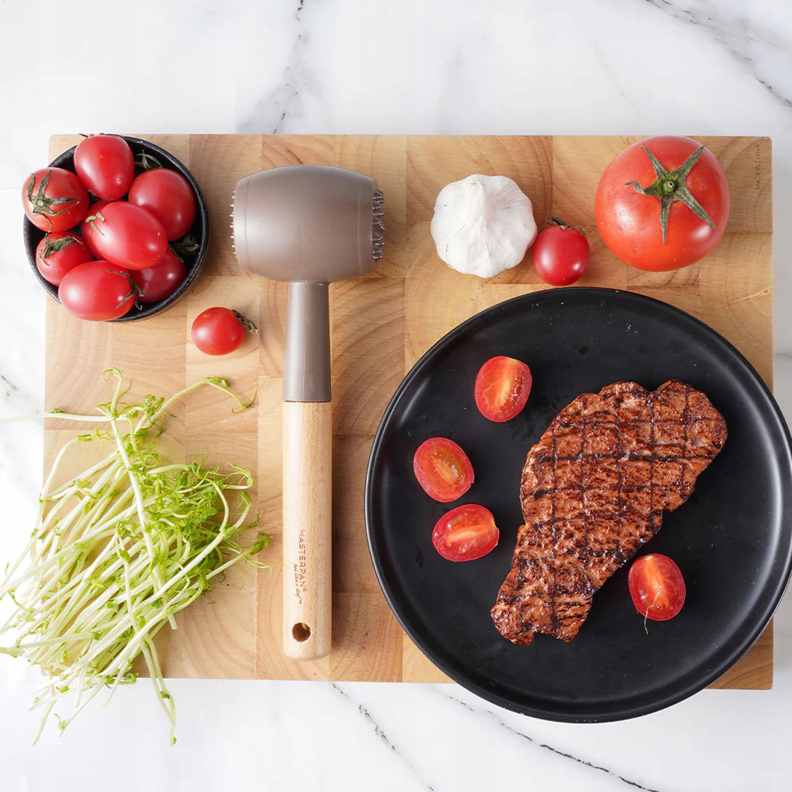 - Idealny do rozbijania mięsa na kotlety i steki, poprawiając ich strukturę i skracając czas smażenia.