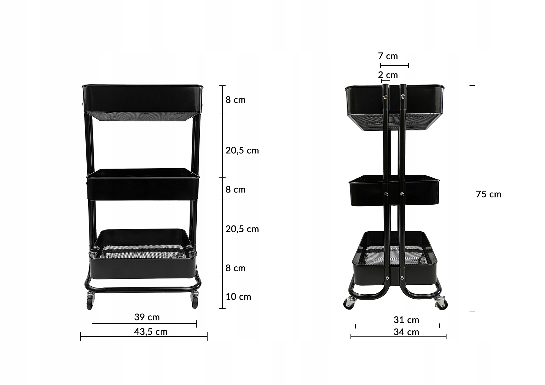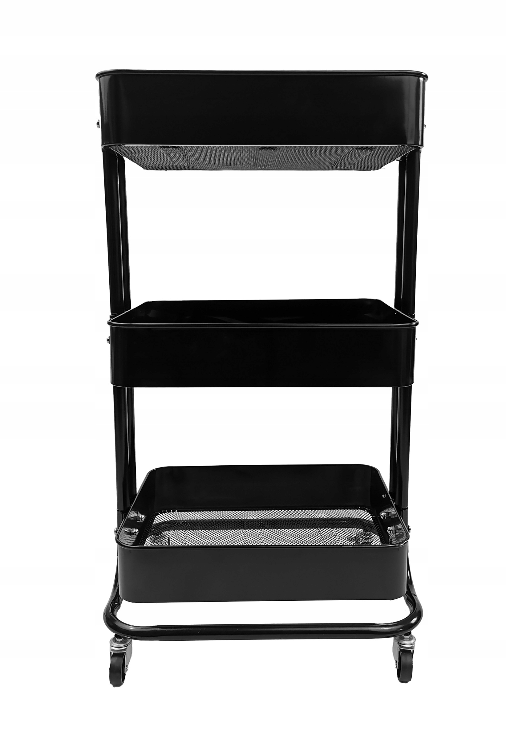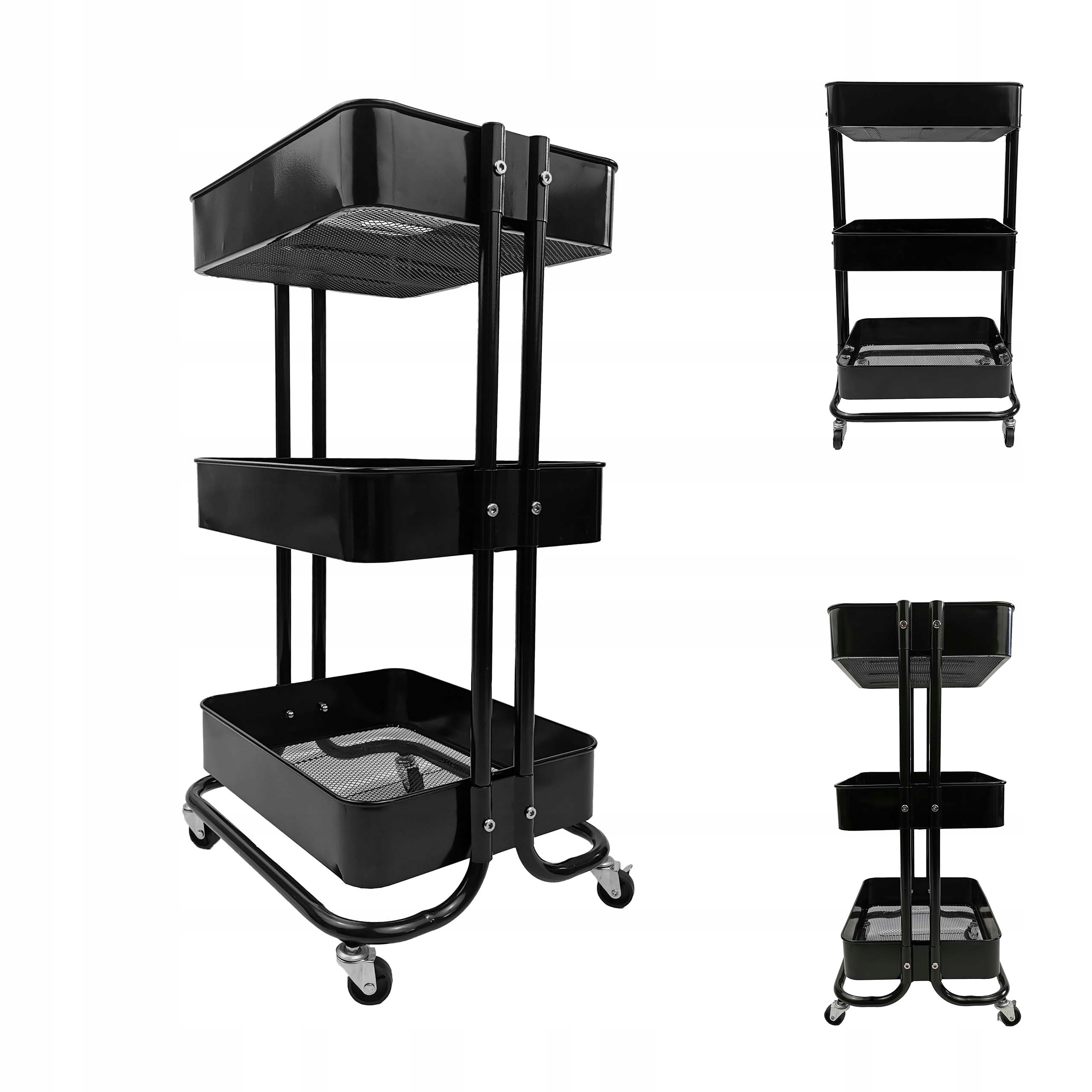 MOBILNY REGAŁ KUCHENNY ŁAZIENKOWY STOLIK NA KÓŁKACH WÓZEK CZARNY
