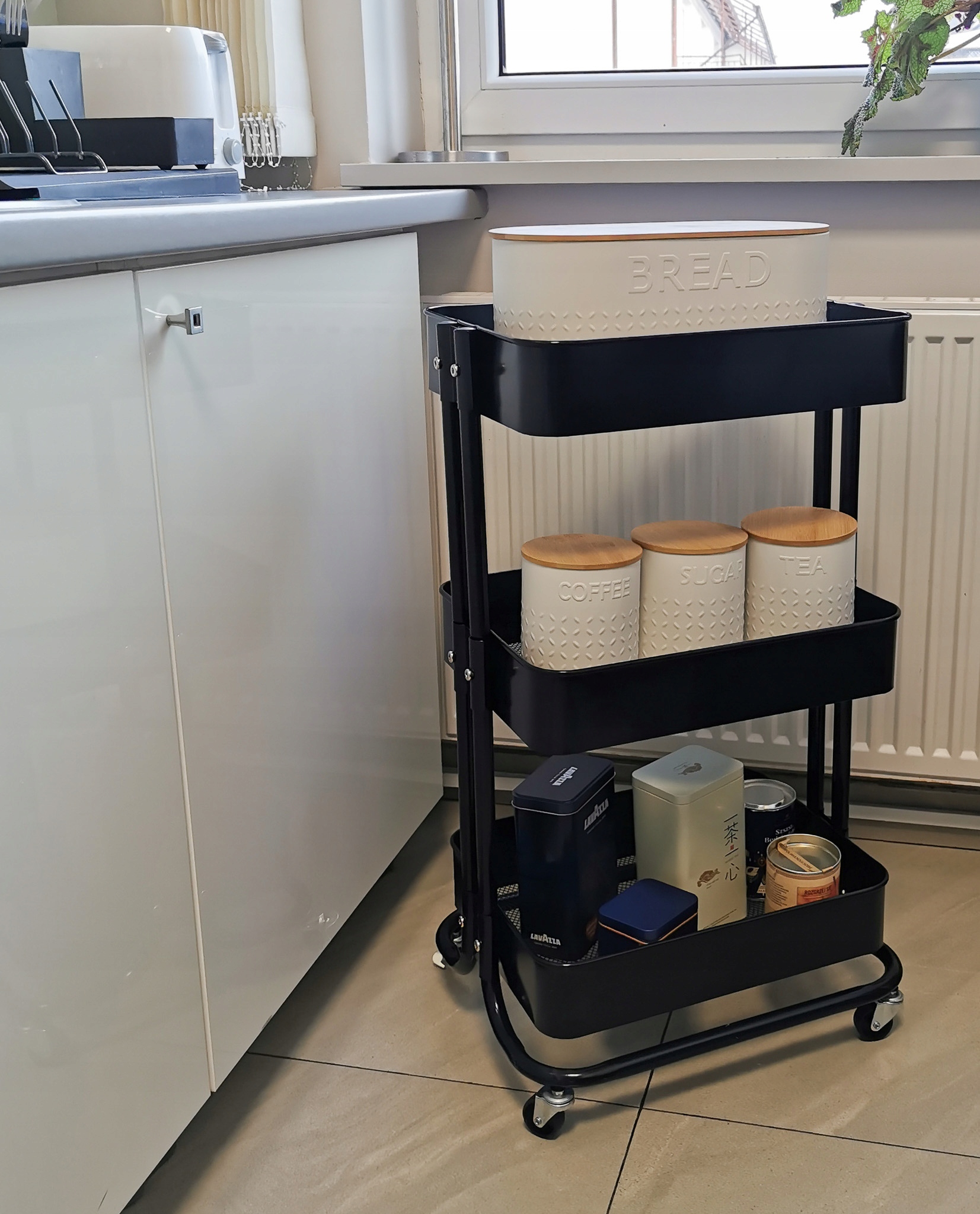 To rewelacyjne rozwiązanie mobilnego regału kuchennego na kółkach sprawdzi się doskonale nie tylko w kuchni, ale również w spiżarni, łazience i wielu innych miejscach
