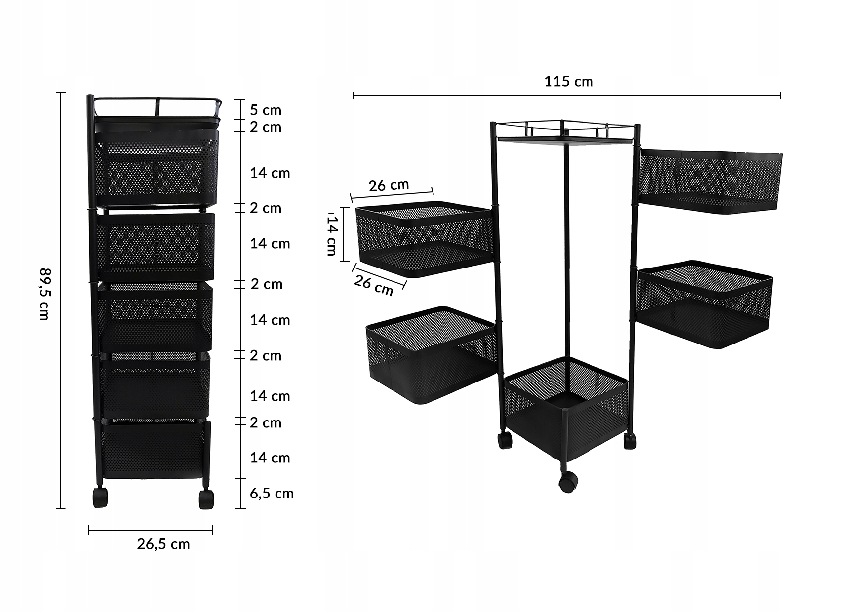 Model: Wózek metalowy 5 koszy 90cm czarny