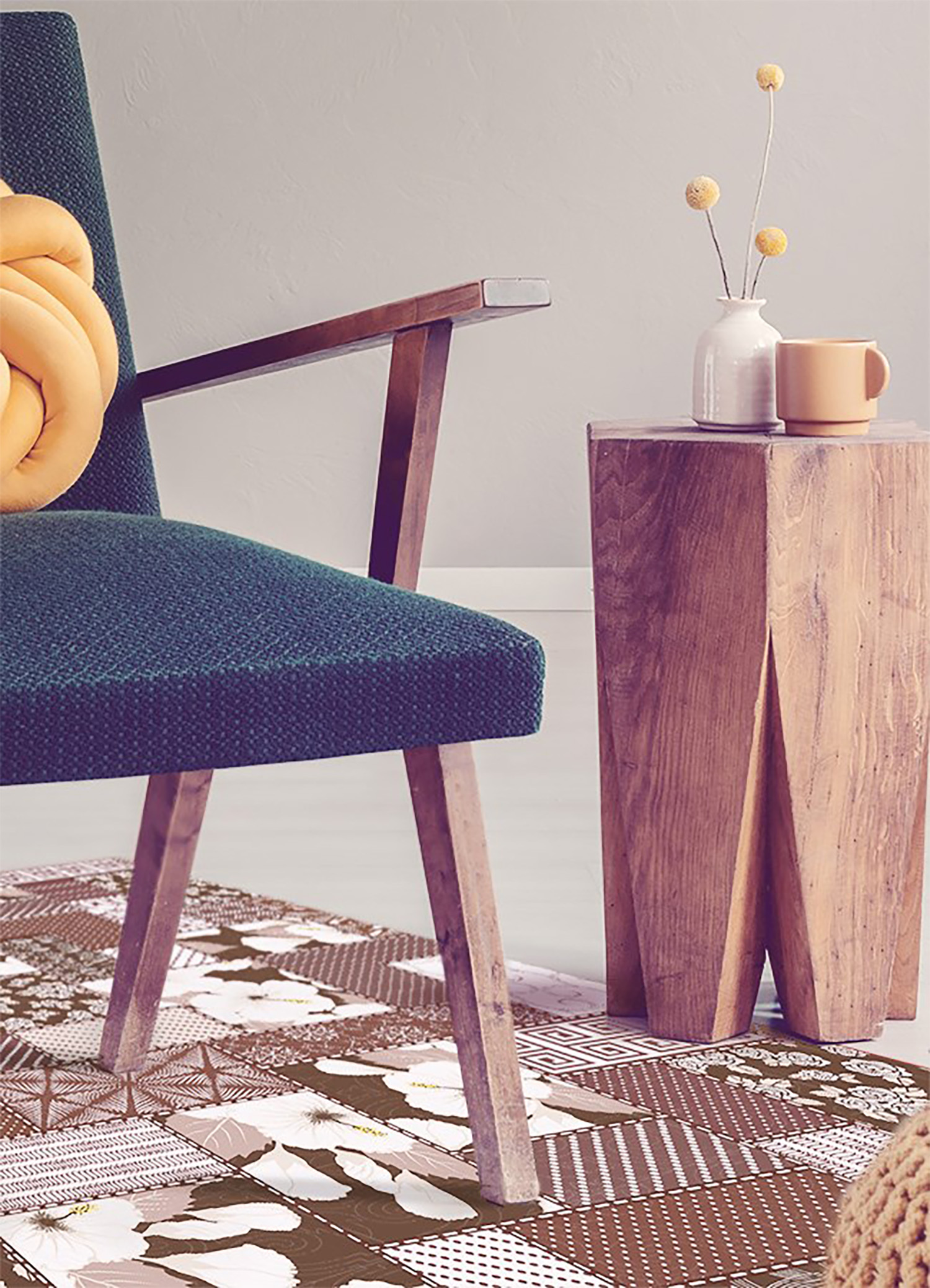 1. Pamiętaj, że kupujesz dywan winylowy z nadrukiem. Motywy takie jak np. błyszczący brokat, złoto, srebro, metal, beton, marmur, pordzewiała blacha, drewno itp. są nadrukowane, przez co mogą się różnić wyglądem od ich prawdziwych odpowiedników. Refleksy światła nie są elementami grafiki.