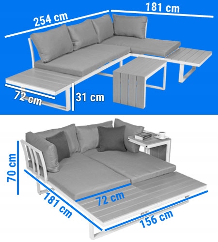 - jako dwie komfortowe leżanki lub sofy 2-osobowe,