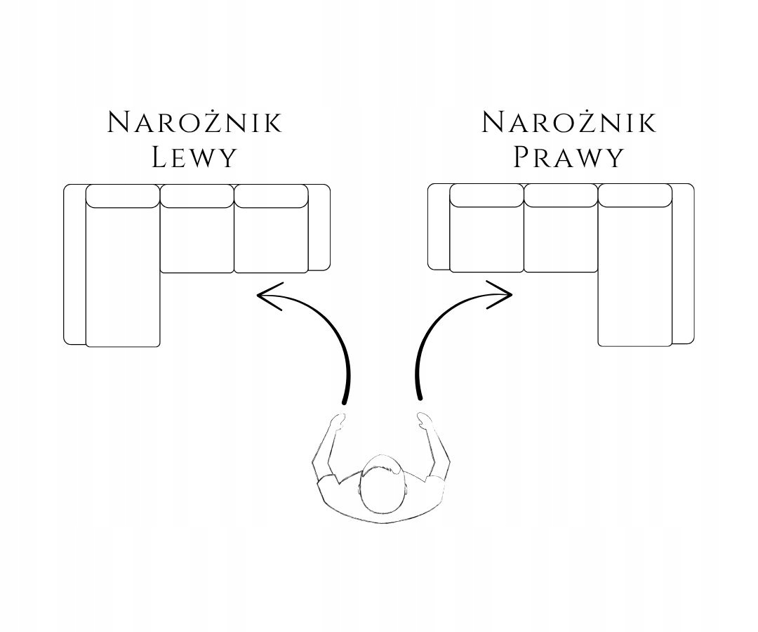 Stronę narożnika (lewą lub prawą) ustala się, patrząc na mebel od frontu – tak, jak będzie ustawiony w pomieszczeniu.