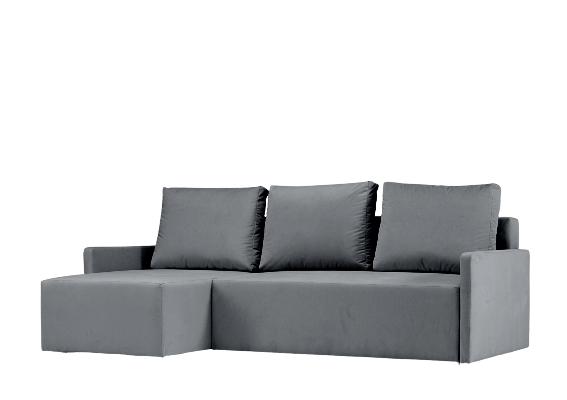 - Narożnik rozkładany z funkcją spania, który idealnie nada się zarówno do małego pokoju w bloku jak i w większych pomieszczeniach.