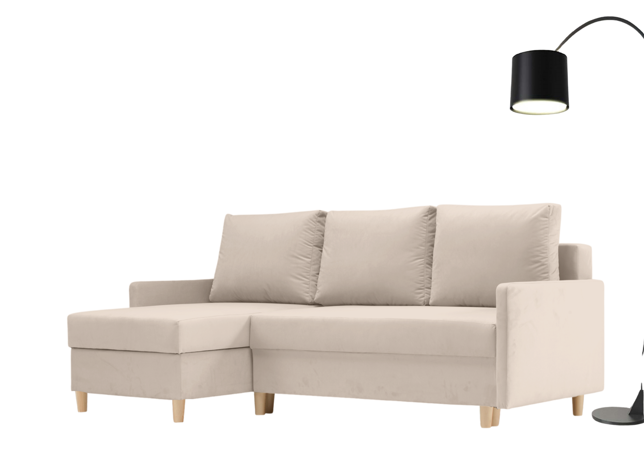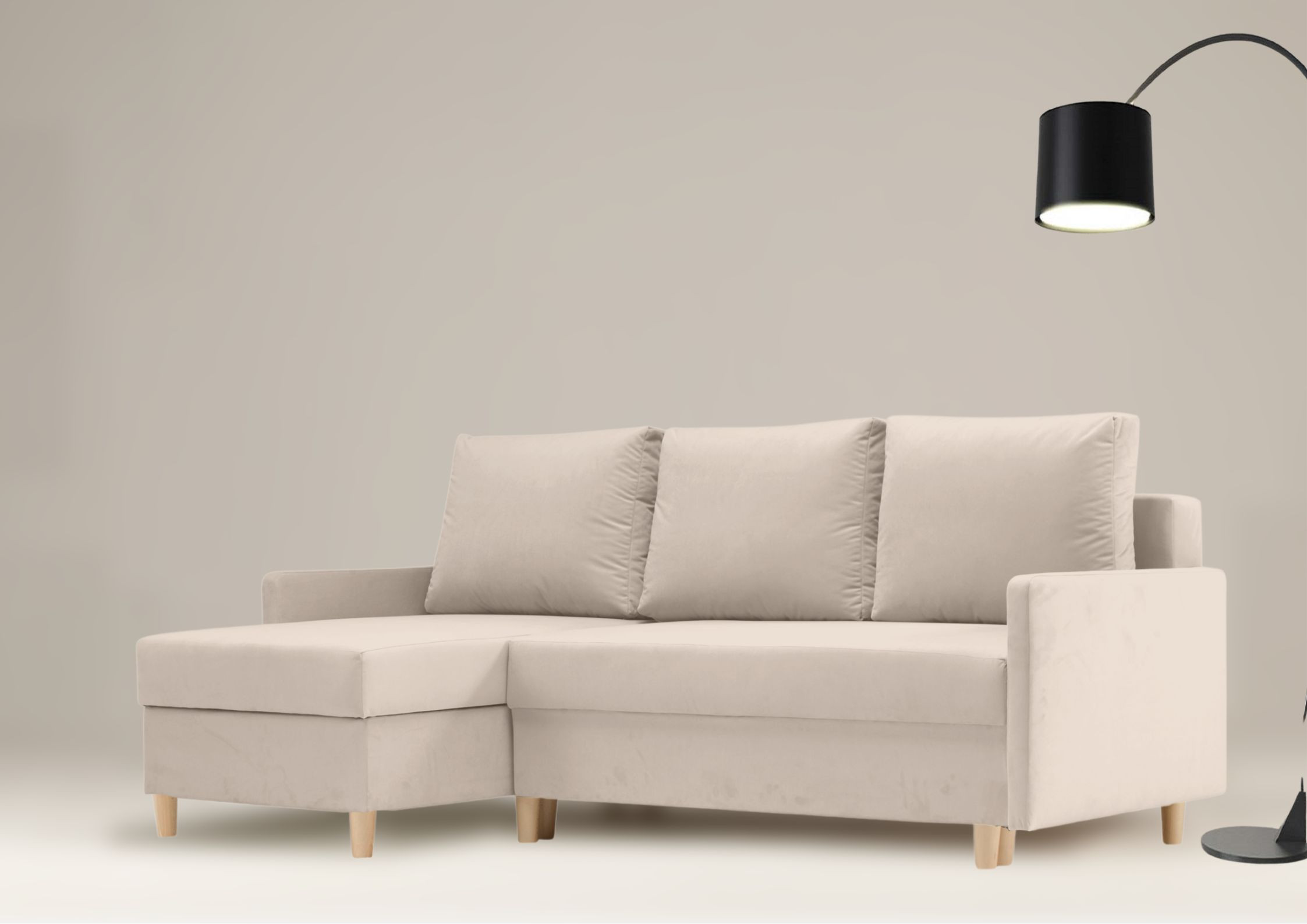⭐️Narożnik AROSA Beżowy Rozkładany Funkcja Spania Schowek Salon Skandynawski