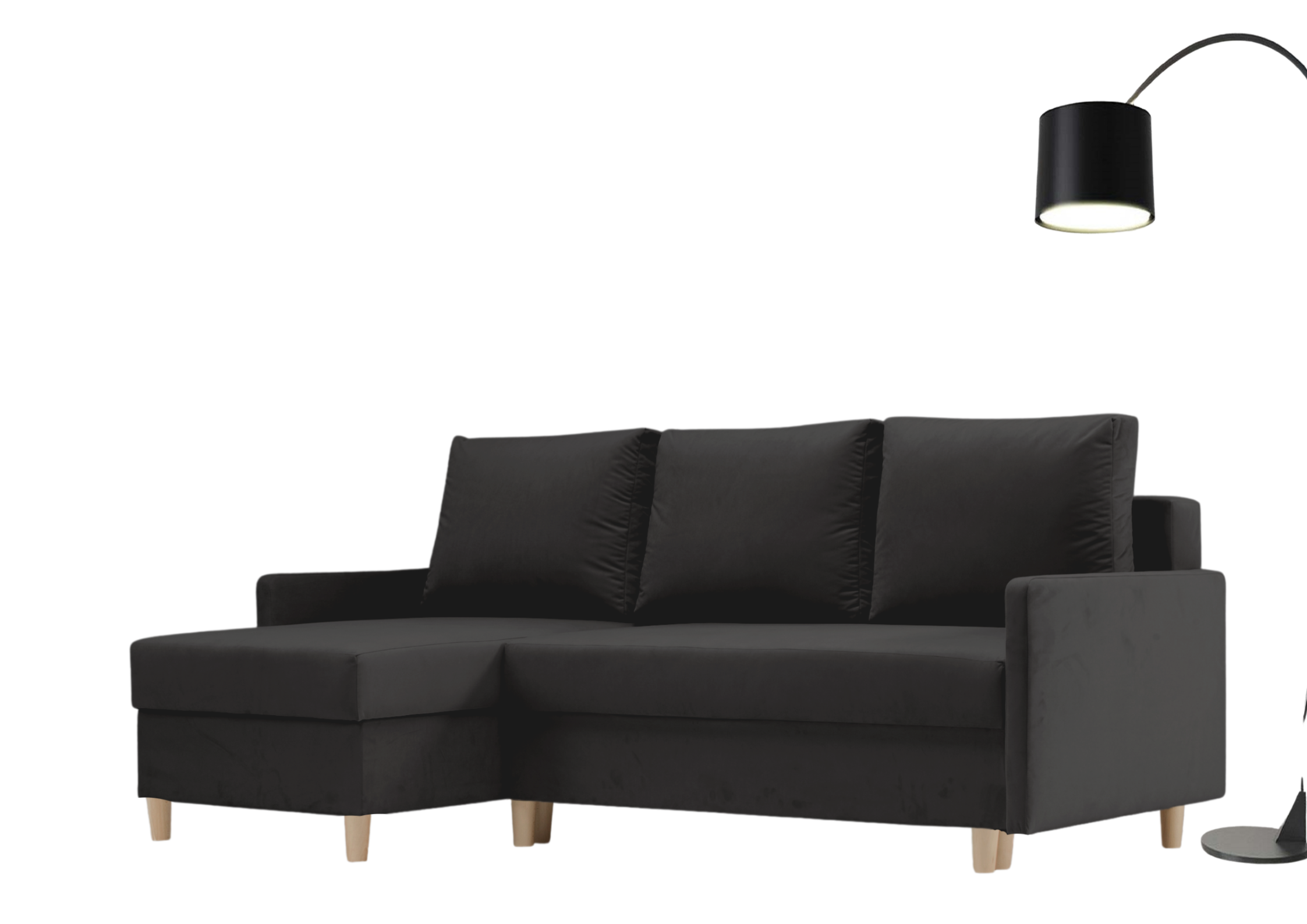 ⭐️Narożnik AROSA Czarny Rozkładany Funkcja Spania Schowek Salon Skandynawski
