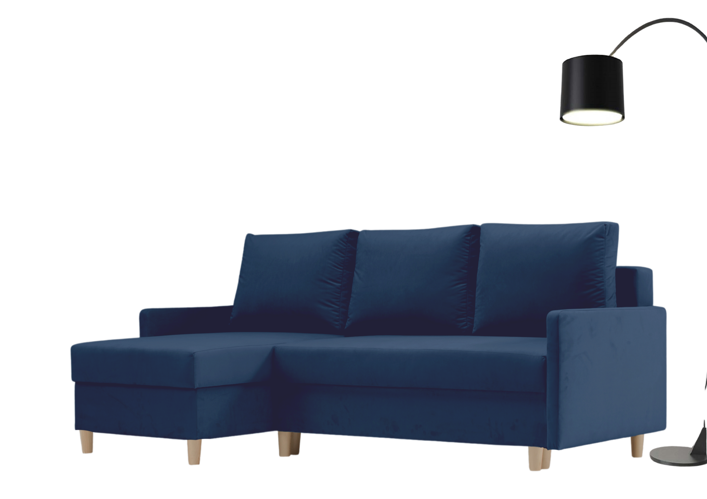 ⭐️Narożnik AROSA Granatowy Rozkładany Funkcja Spania Schowek Salon Skandynawski