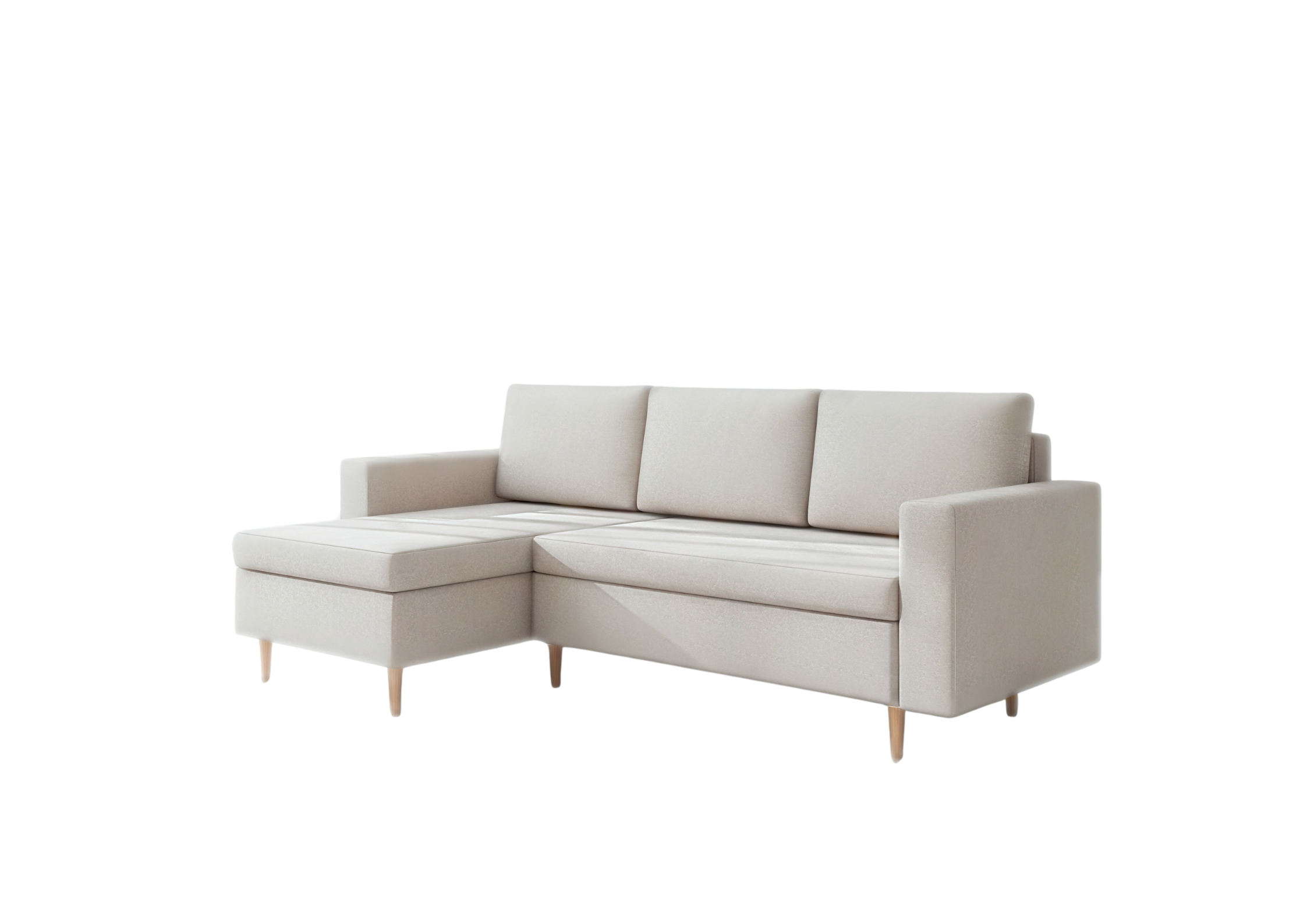 Narożni skandynawski Bever to mebel który, jest doskonałą propozycją dla osób ceniących sobie minimalizm, nowoczesność oraz funkcjonalność.w stylu skandynawskim. Narożnik rozkładany z funkcją spania oraz dodatkową przestrzeń na pościel. Narożnika drewnianych nóżkach.