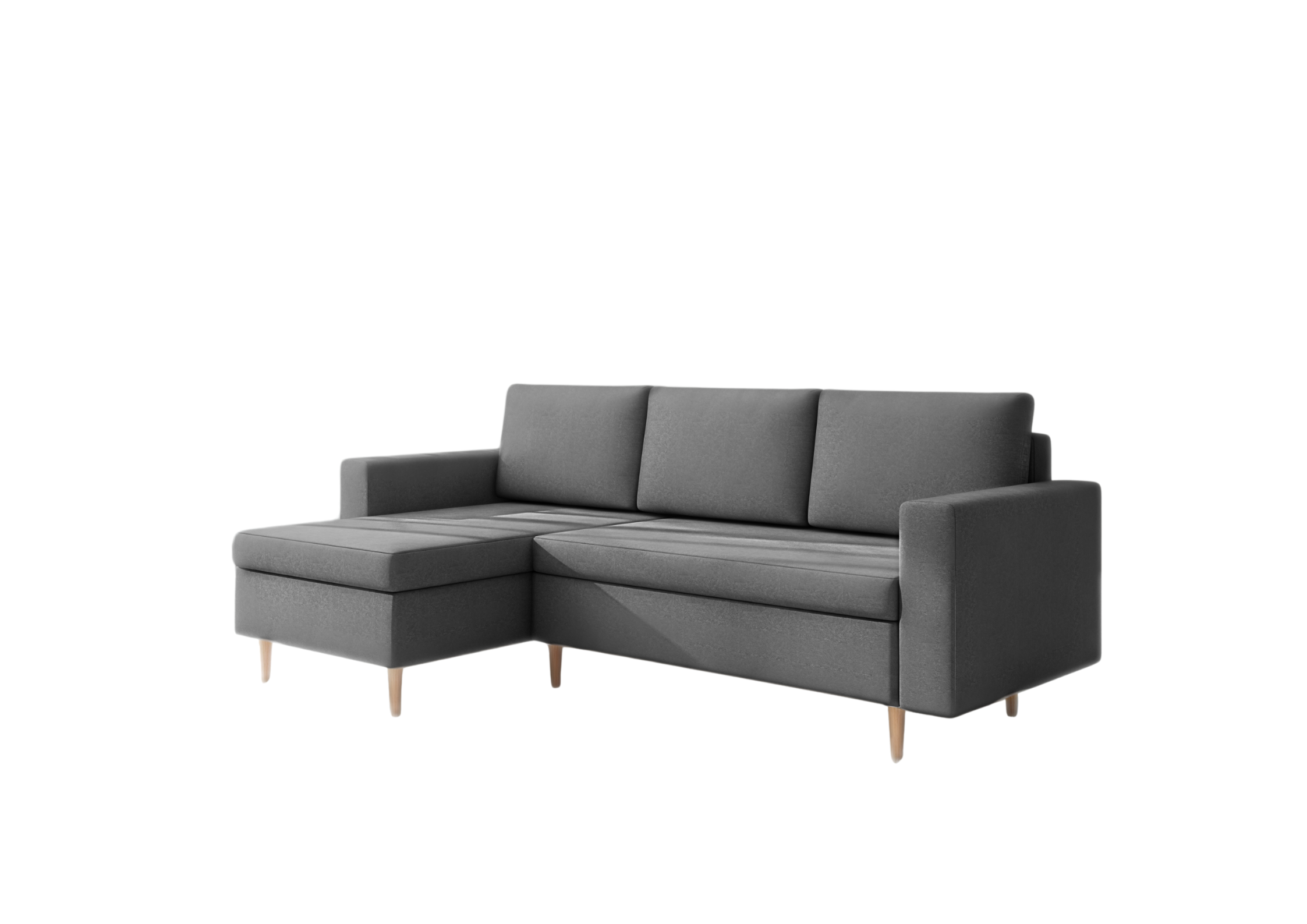 Narożni skandynawski Bever to mebel który, jest doskonałą propozycją dla osób ceniących sobie minimalizm, nowoczesność oraz funkcjonalność.w stylu skandynawskim. Narożnik rozkładany z funkcją spania oraz dodatkową przestrzeń na pościel. Narożnika drewnianych nóżkach.