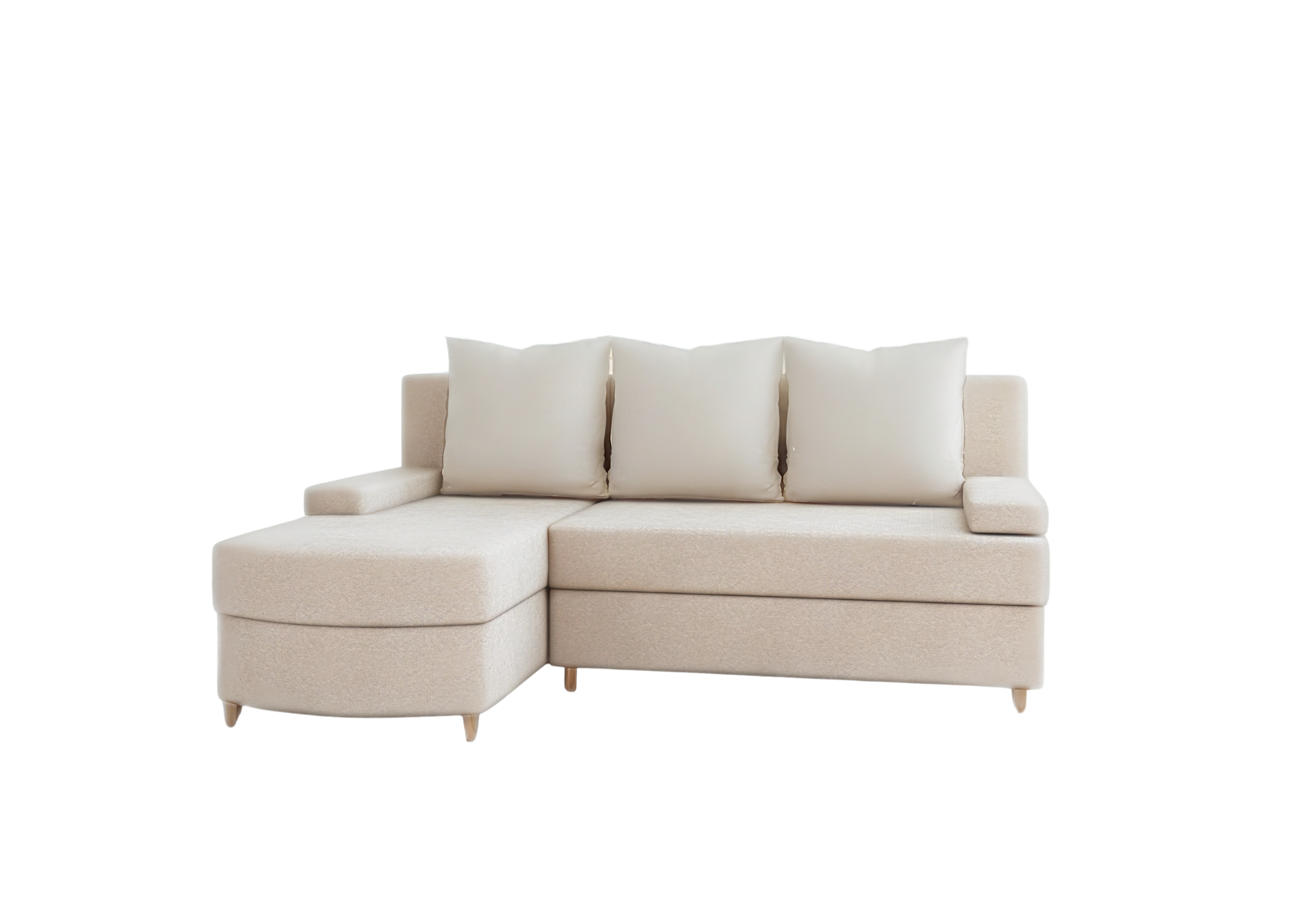 ⭐️Narożnik HELIOS Beżowy Rozkładany Funkcja Spania Mały 200x150 cm Otomana