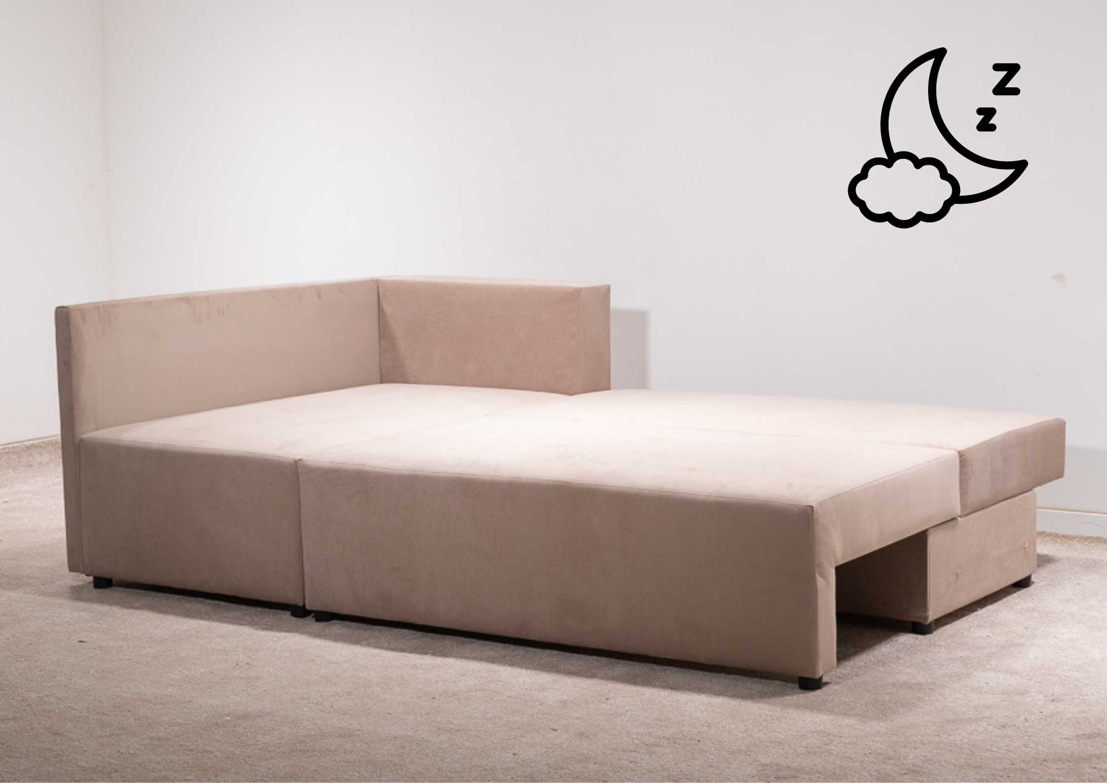 ⭐️Narożnik PONO L Lewy Beżowy Rozkładany Funkcja Spania Schowek Salon Welur