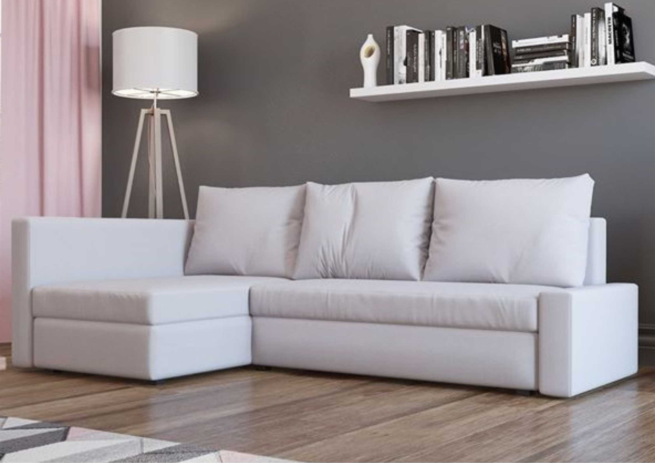 - Narożnik rozkładany z funkcją spania, który idealnie nada się zarówno do małego pokoju w bloku jak i w większych pomieszczeniach.