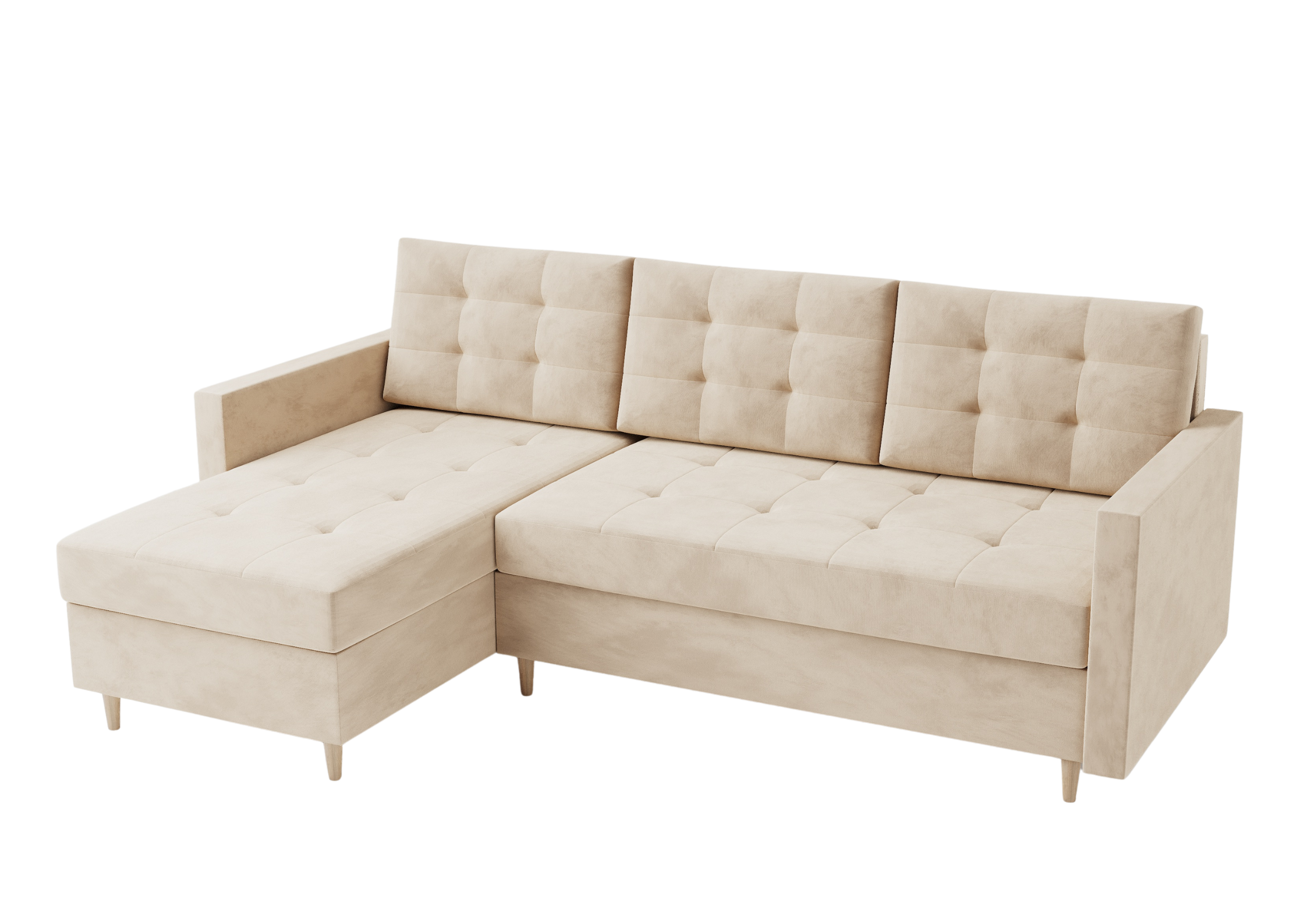 ⭐️Narożnik VIDO Beżowy Rozkładany Funkcja Spania Pikowany Skandynawski