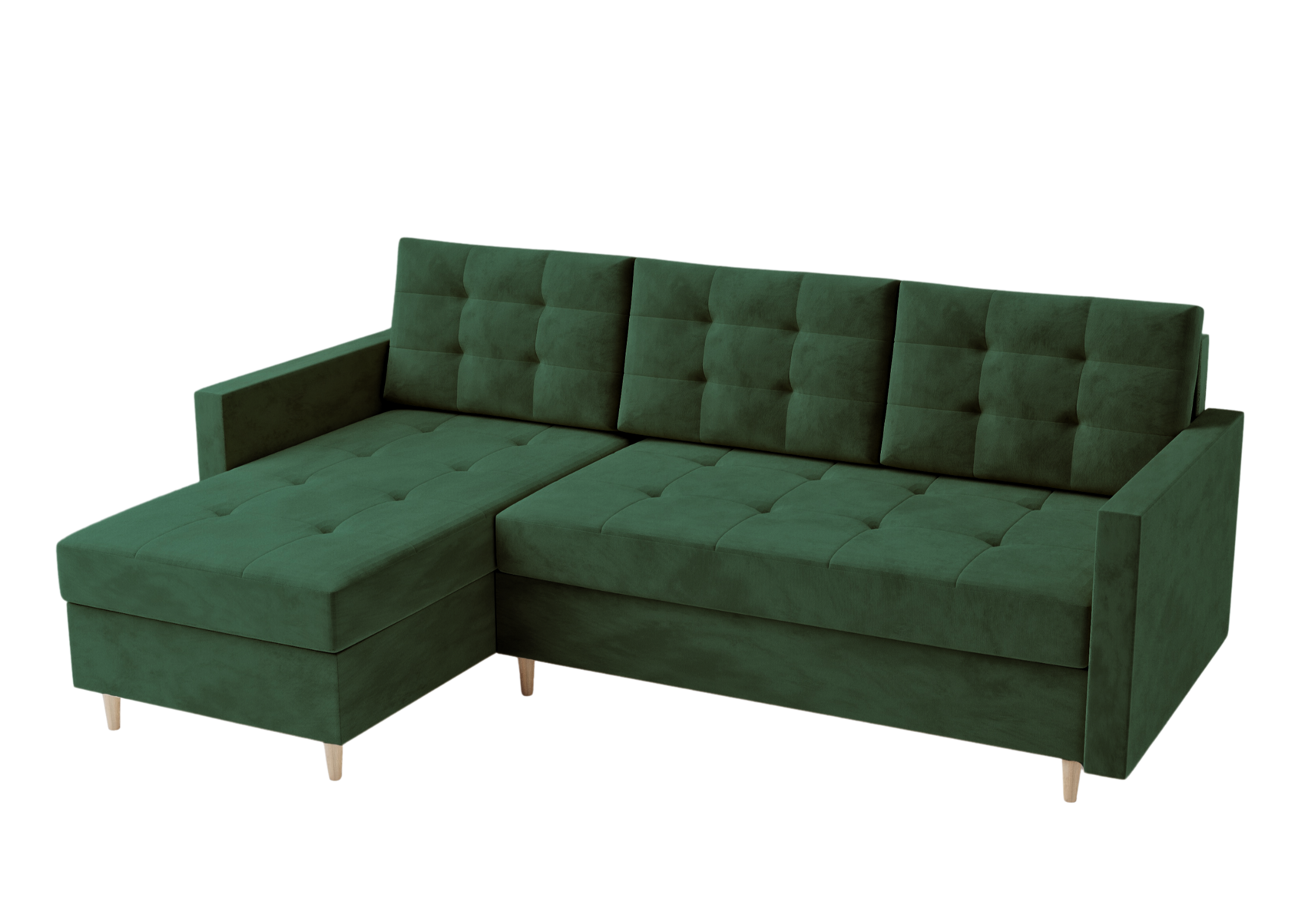 ⭐️Narożnik Rozkładany Lewostronny VIDO Zielony Funkcja Spania Pikowany