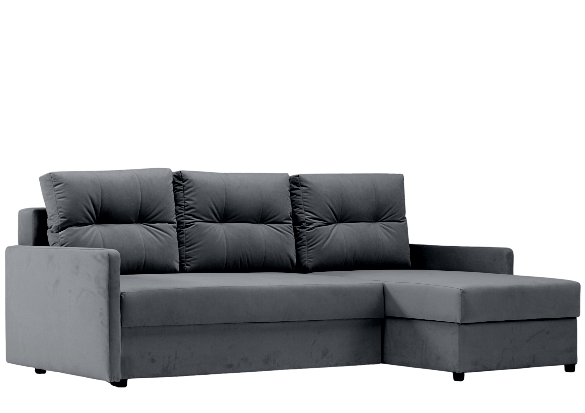 ⭐️Narożnik Rozkładany Prawy ARIA Grafitowy Funkcja Spania Schowek Welur Salon