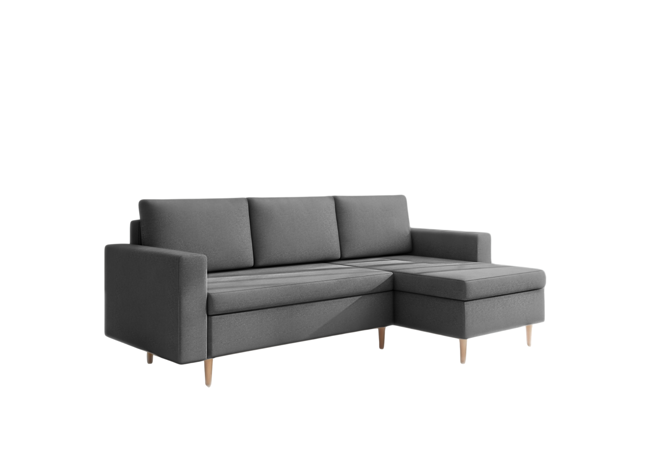 Narożni skandynawski Bever to mebel który, jest doskonałą propozycją dla osób ceniących sobie minimalizm, nowoczesność oraz funkcjonalność. W stylu skandynawskim. Narożnik rozkładany z funkcją spania oraz dodatkową przestrzeń na pościel. Narożnika drewnianych nóżkach.