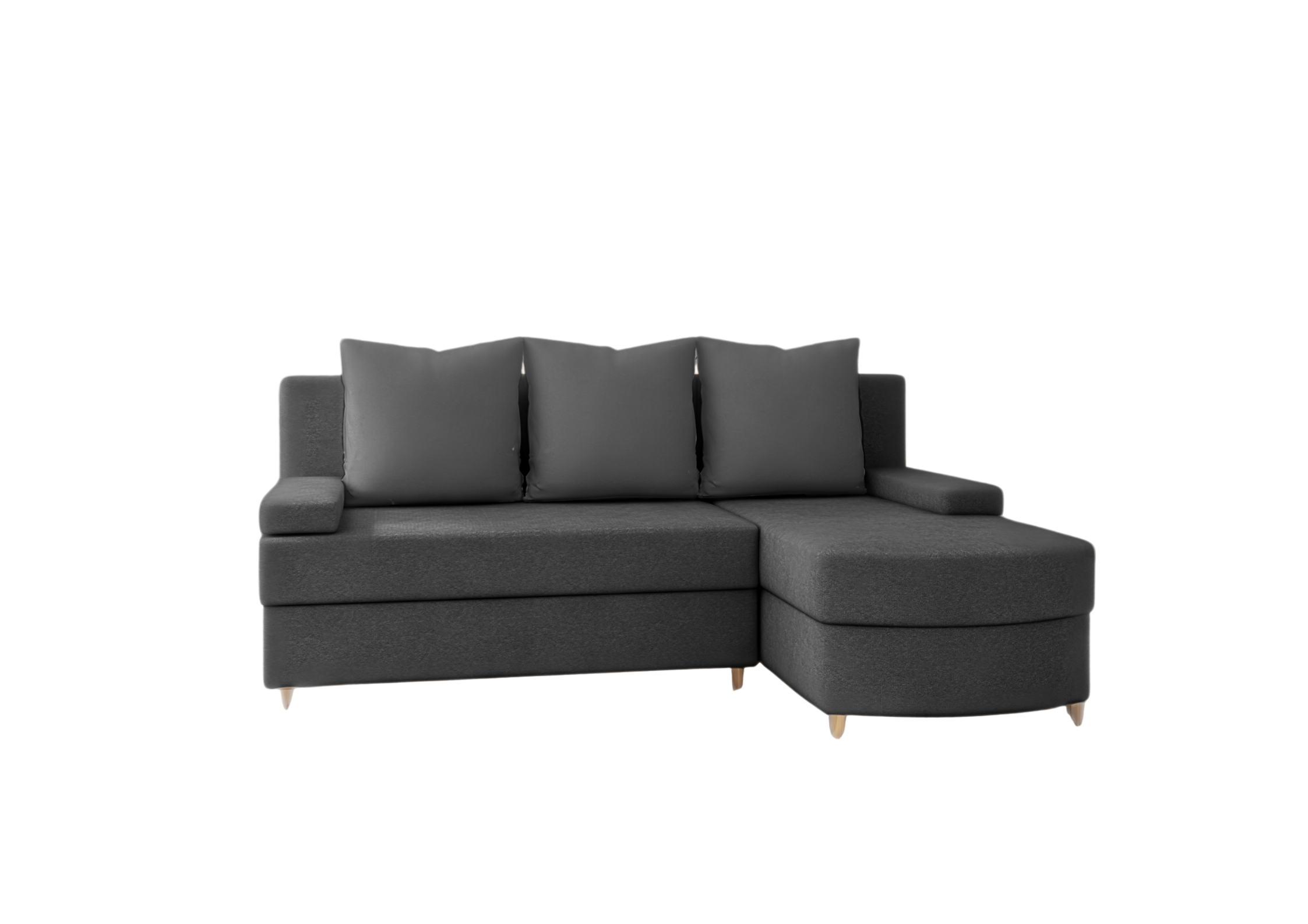 - Narożnik rozkładany z funkcją spania, który idealnie nada się zarówno do małego pokoju w bloku jak i w większych pomieszczeniach.