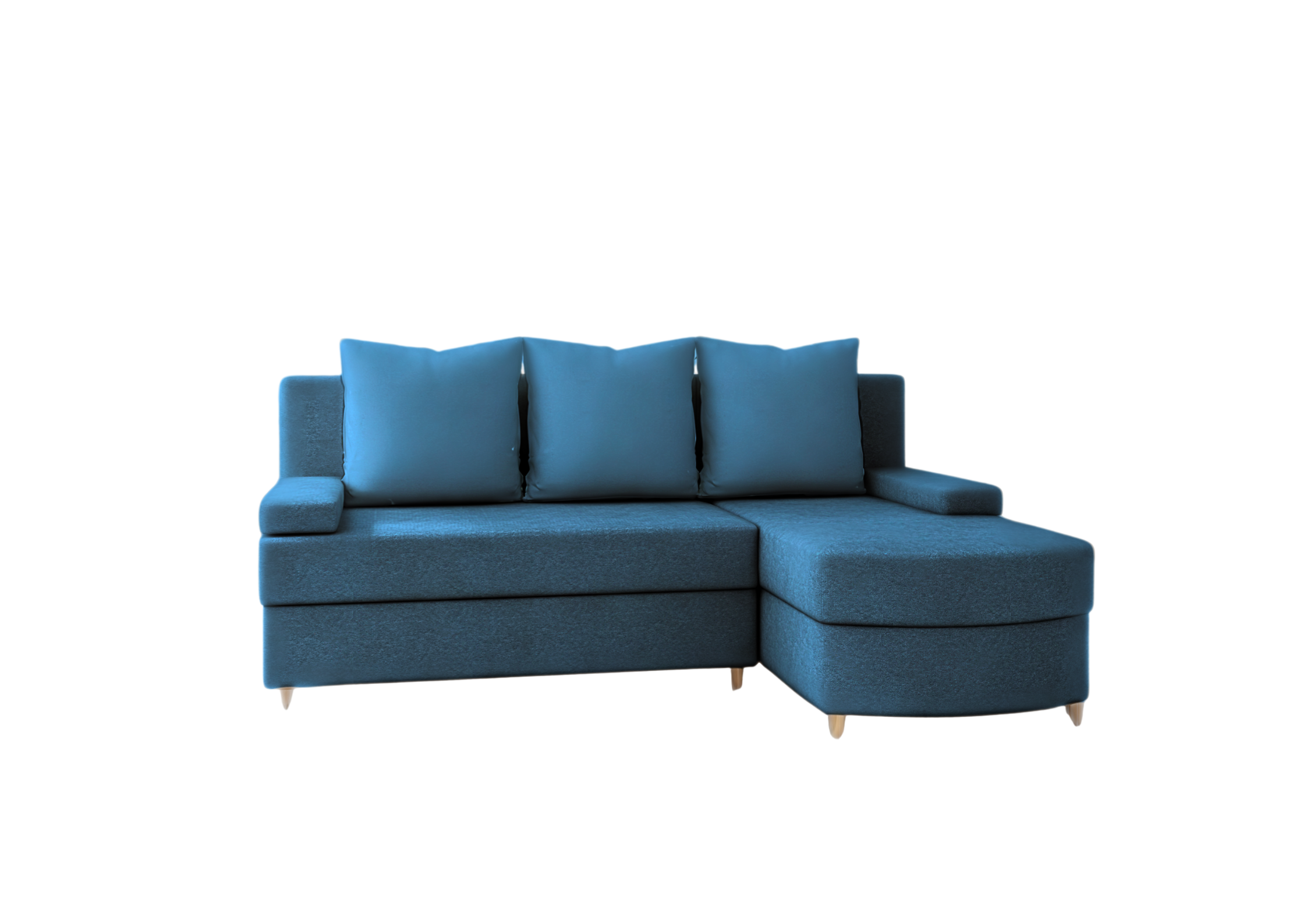 - Narożnik rozkładany z funkcją spania, który idealnie nada się zarówno do małego pokoju w bloku jak i w większych pomieszczeniach.
