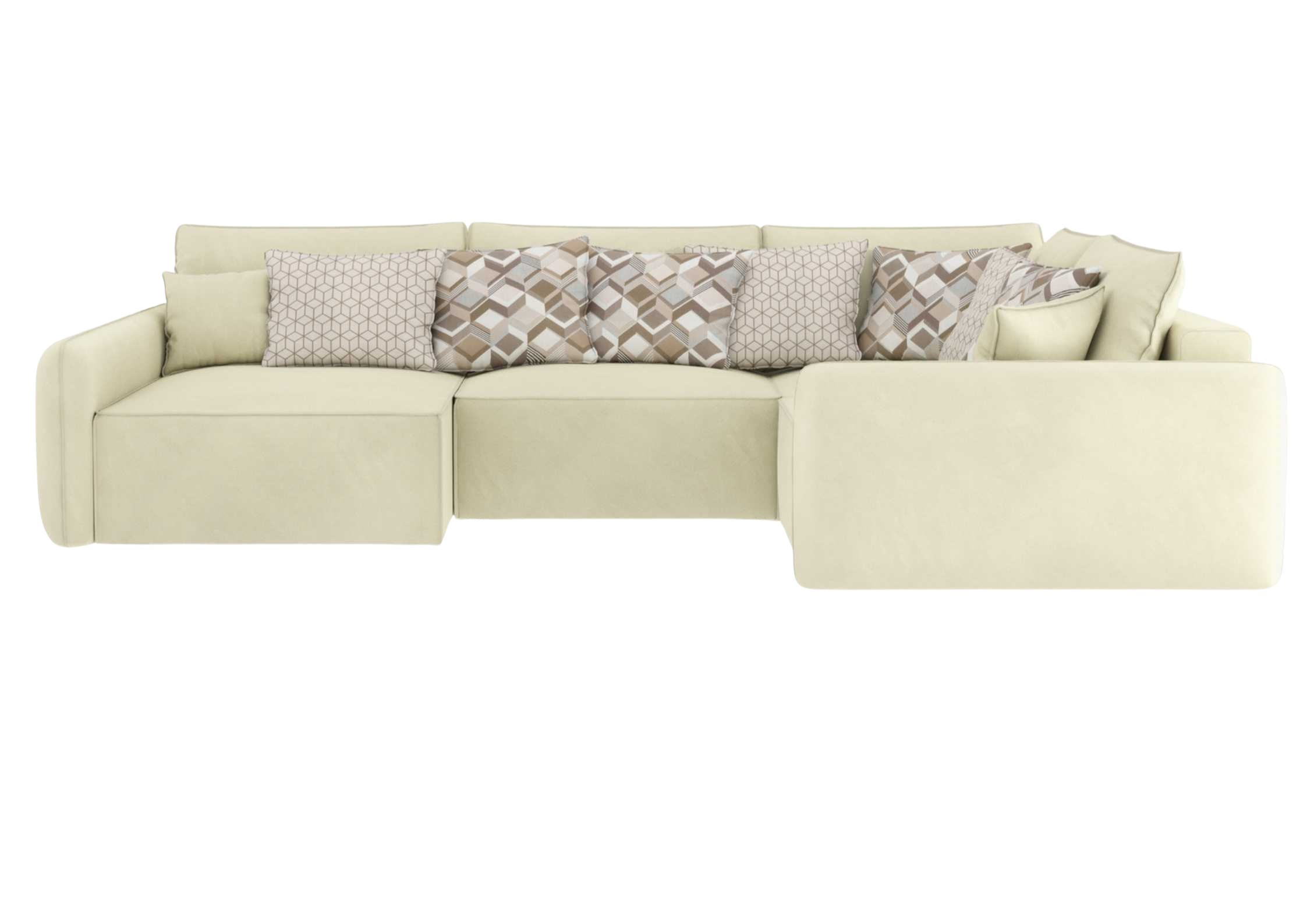 To propozycja do większych salonów. Głębokie siedziska zapewniają funkcję relaksu po całym dniu pracy. Dodatkowo zaprojektowaliśmy w nim funkcję spania, dzięki czemu Twoi goście mogą zostać na dłużej. Duże poduszki oparciowe sprawi, że oprzesz się komfortowo na meblu. Mniejsze są elementami aranżacji- do dokupienia oddzielnie. Narożnik składa się z modułów.