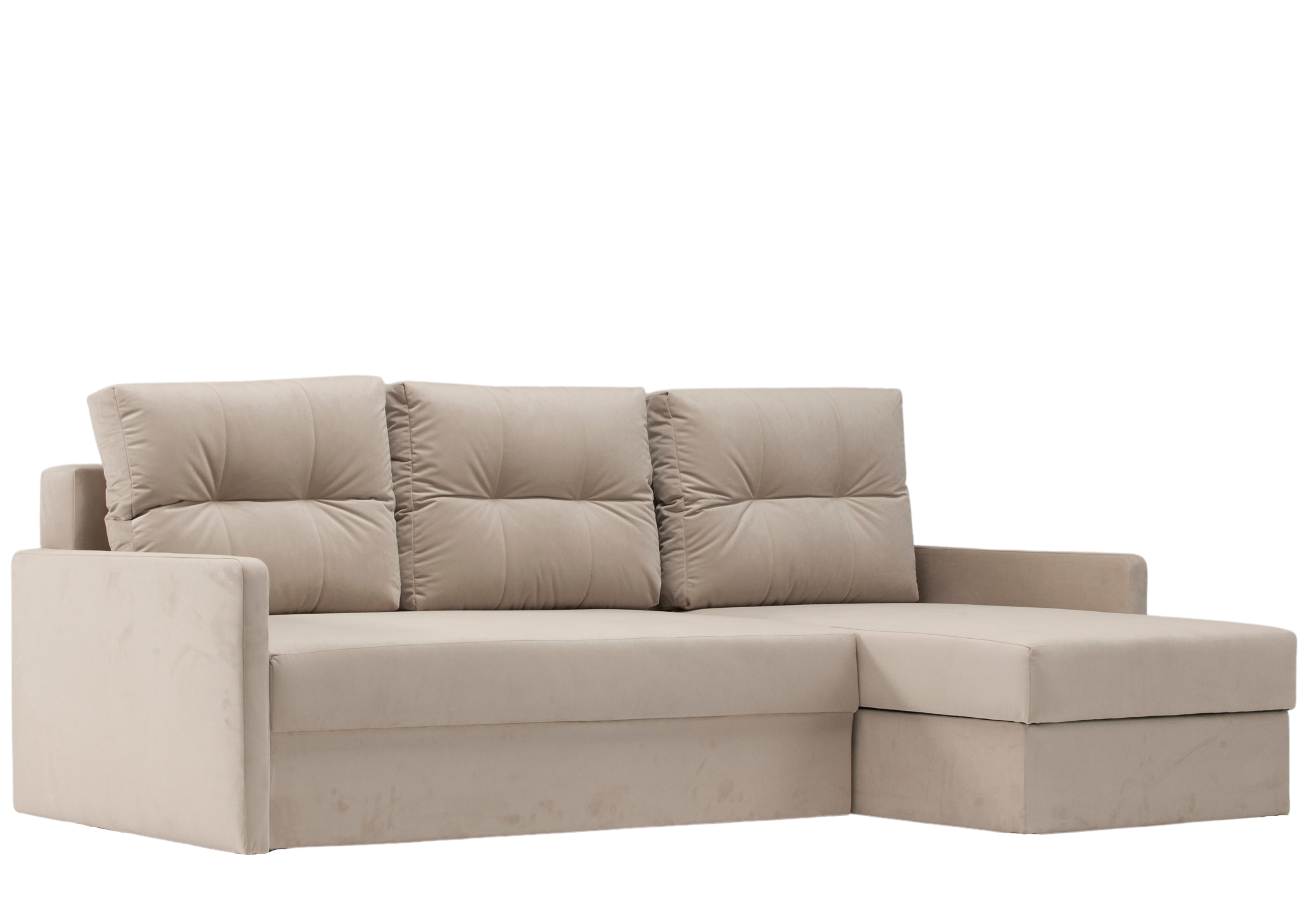 ⭐️Narożnik Rozkładany Prawy ARIA Beżowy Funkcja Spania Schowek Welur Salon