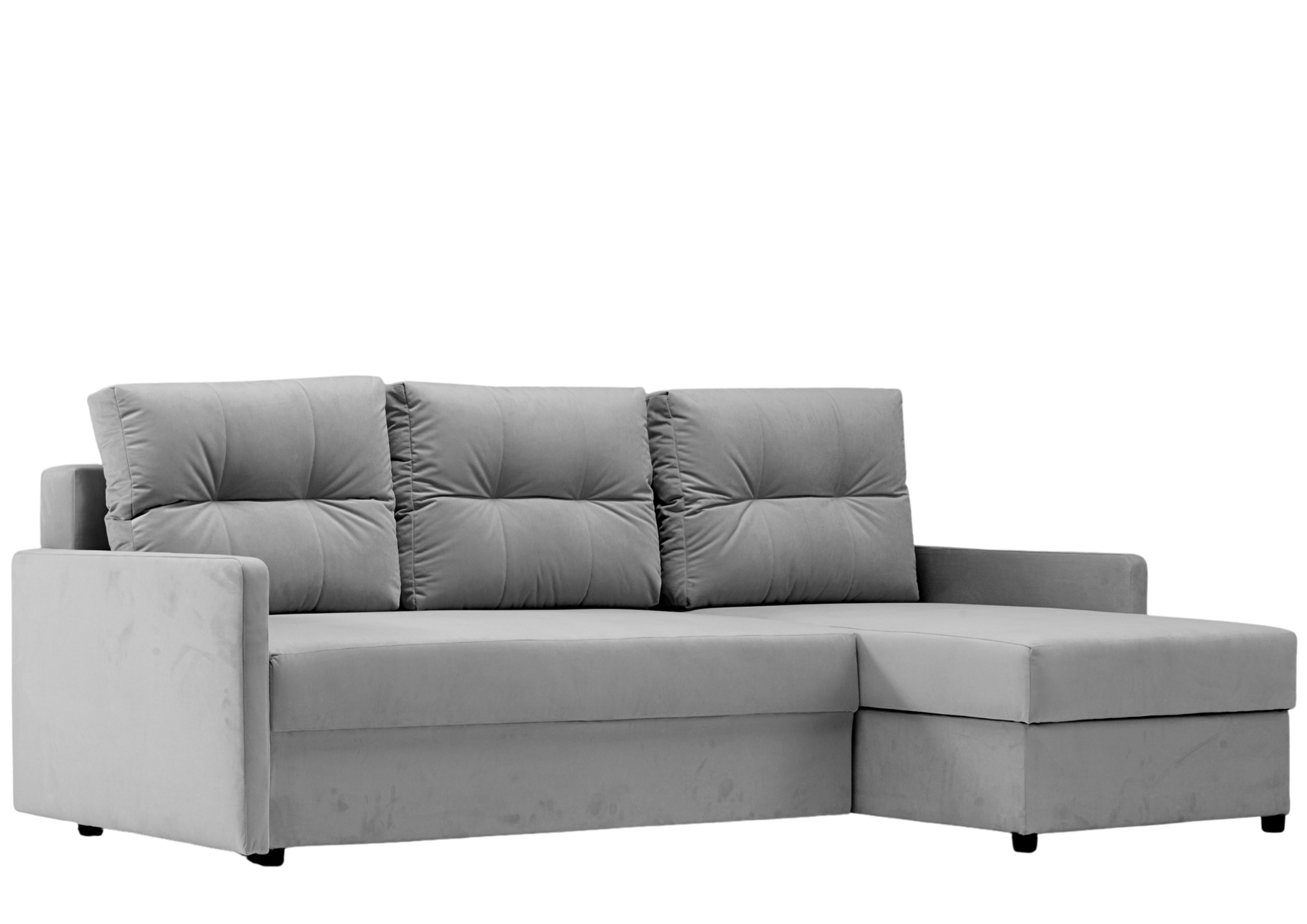 ⭐️Narożnik Rozkładany Prawy ARIA Szary Funkcja Spania Schowek Welur Salon