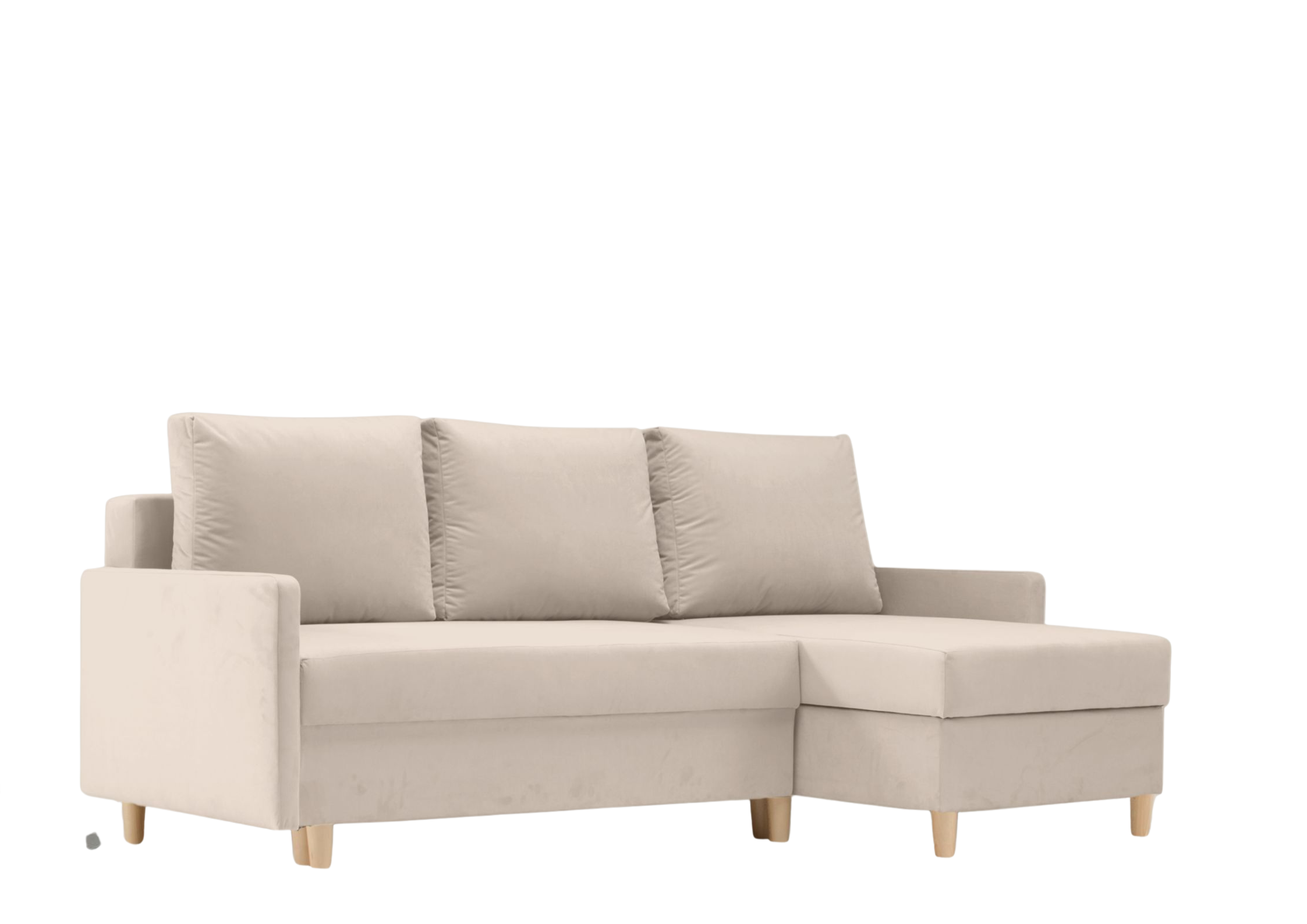 ⭐️Narożnik Rozkładany Prawostronny AROSA Beżowy Funkcja Spania Schowek Salon
