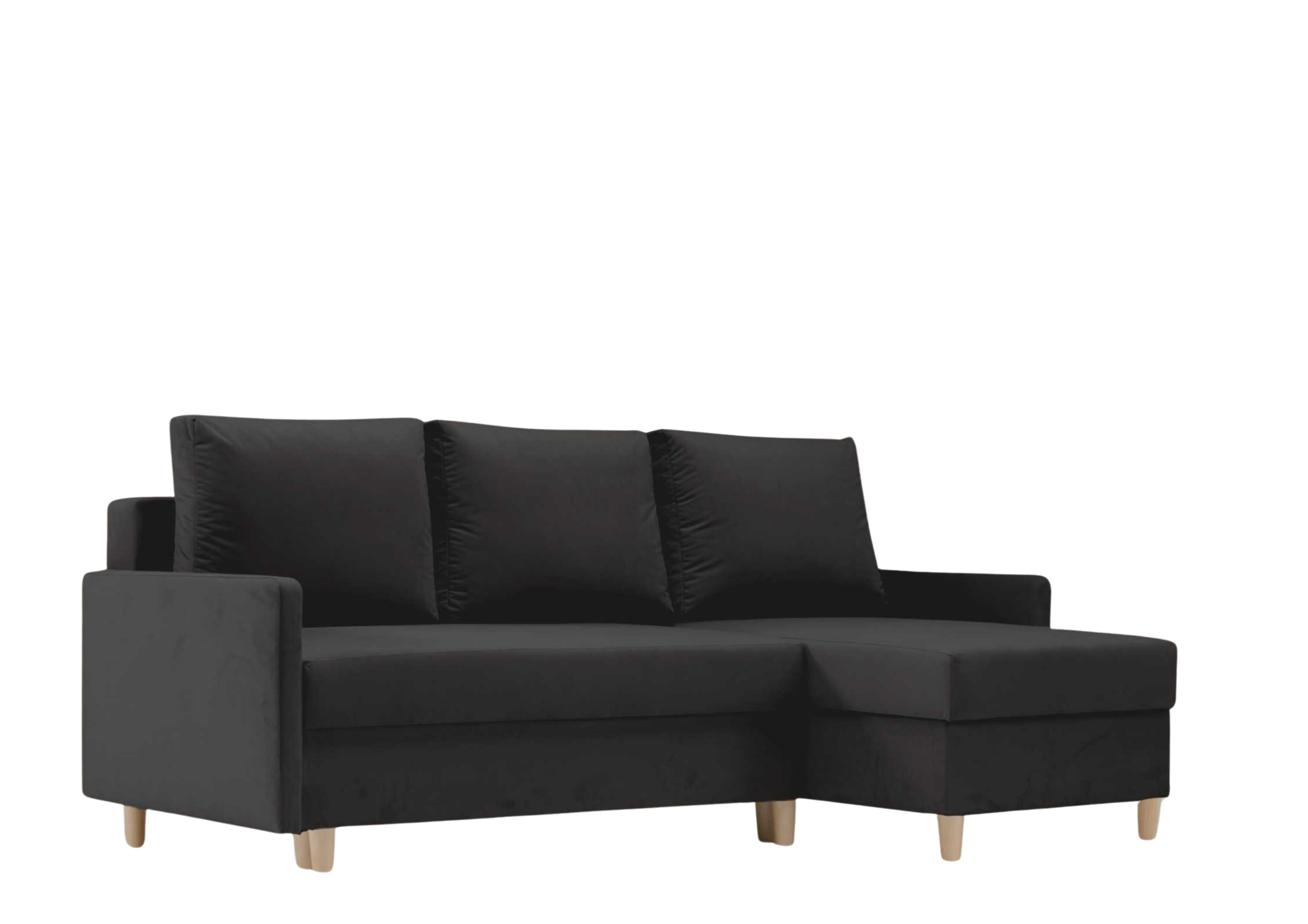 ⭐️Narożnik Rozkładany Prawostronny AROSA Czarny Funkcja Spania Schowek Salon
