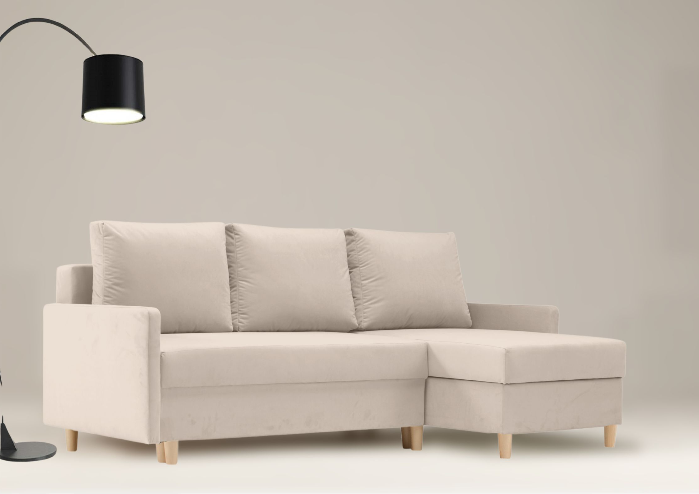 Narożnik Arosa to mebel w stylu skandynawskim, narożnik o nowoczesnej budowie ozdobi Twoje wnętrze. Narożnik z funkcja spania oraz dodatkową przestrzenią na pościel, wykonujemy na nogach z litego drewna.