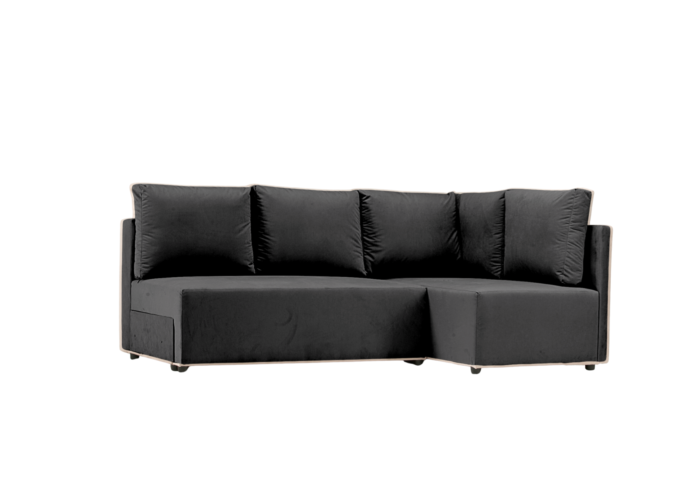 ⭐️Narożnik Rozkładany Prawy MOBO Czarny Funkcja Spania Schowek Uniwersalny