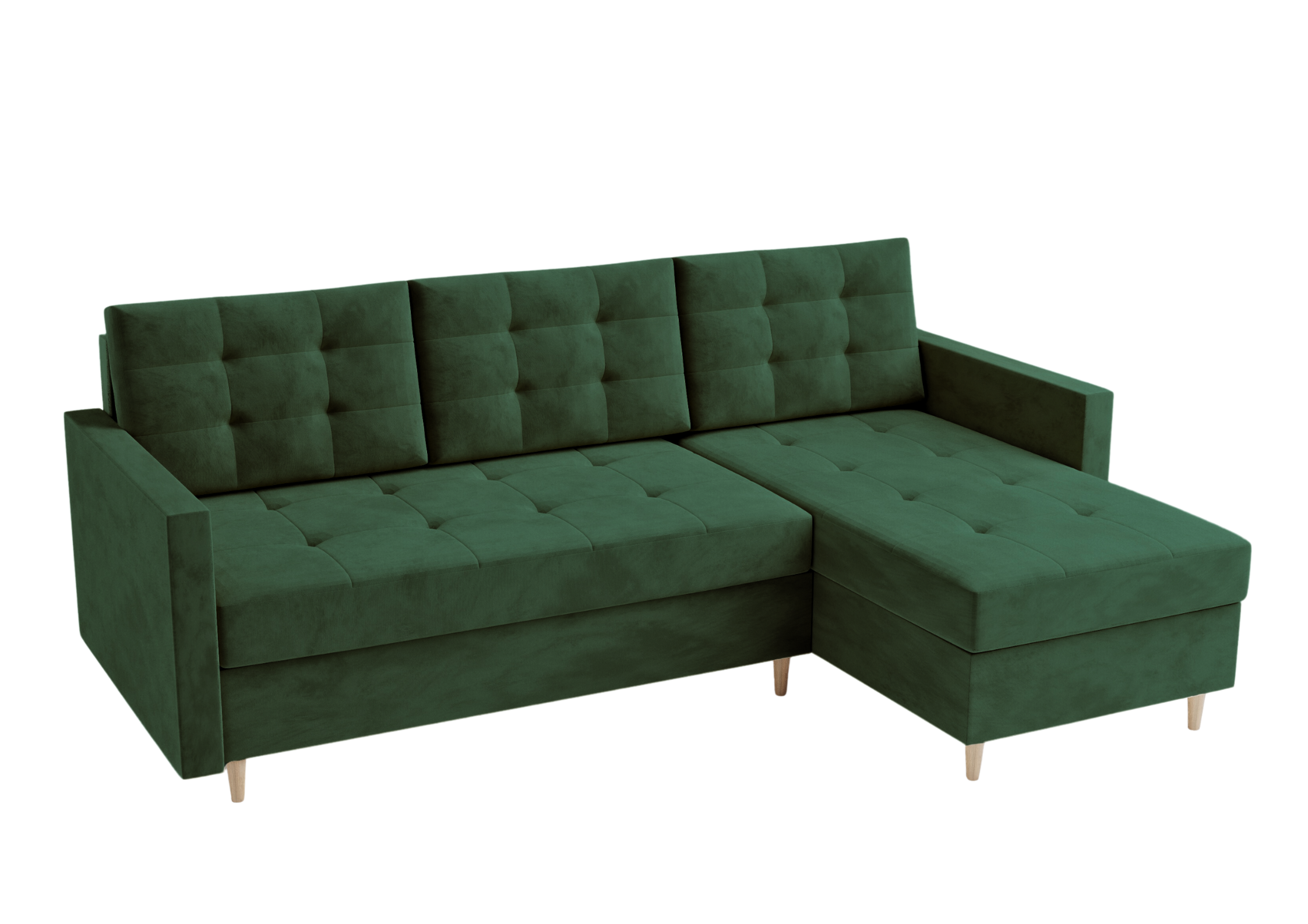 ⭐️Narożnik Rozkładany Lewostronny VIDO Zielony Funkcja Spania Pikowany