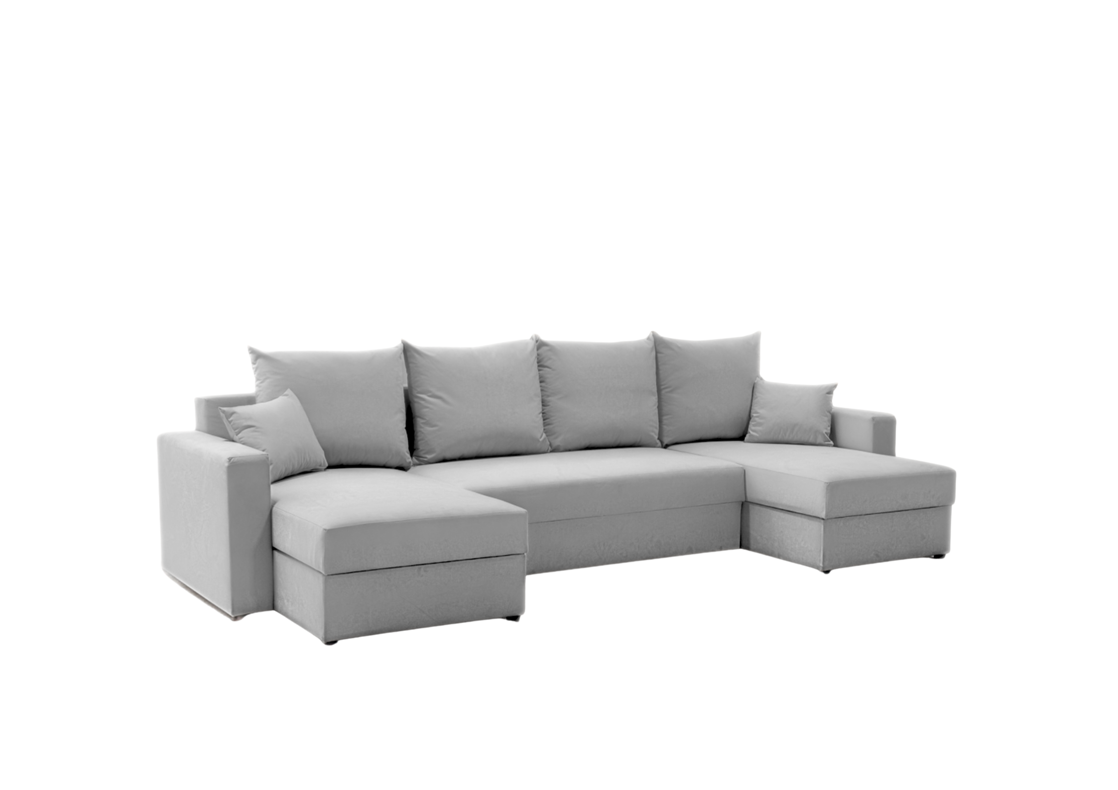 Duży narożnik do salonu ARLO U to nowoczesny mebel w kształcie litery „U”. Idealna propozycja dla tych, którzy szukają niezwykle dużego mebla, zdolnego pomieścić całą rodzinę i przyjaciół podczas wspólnych spotkań. Narożnik z pojemnikami na pościel. Narożnik rozkładany z dużą powierzchnią spania.