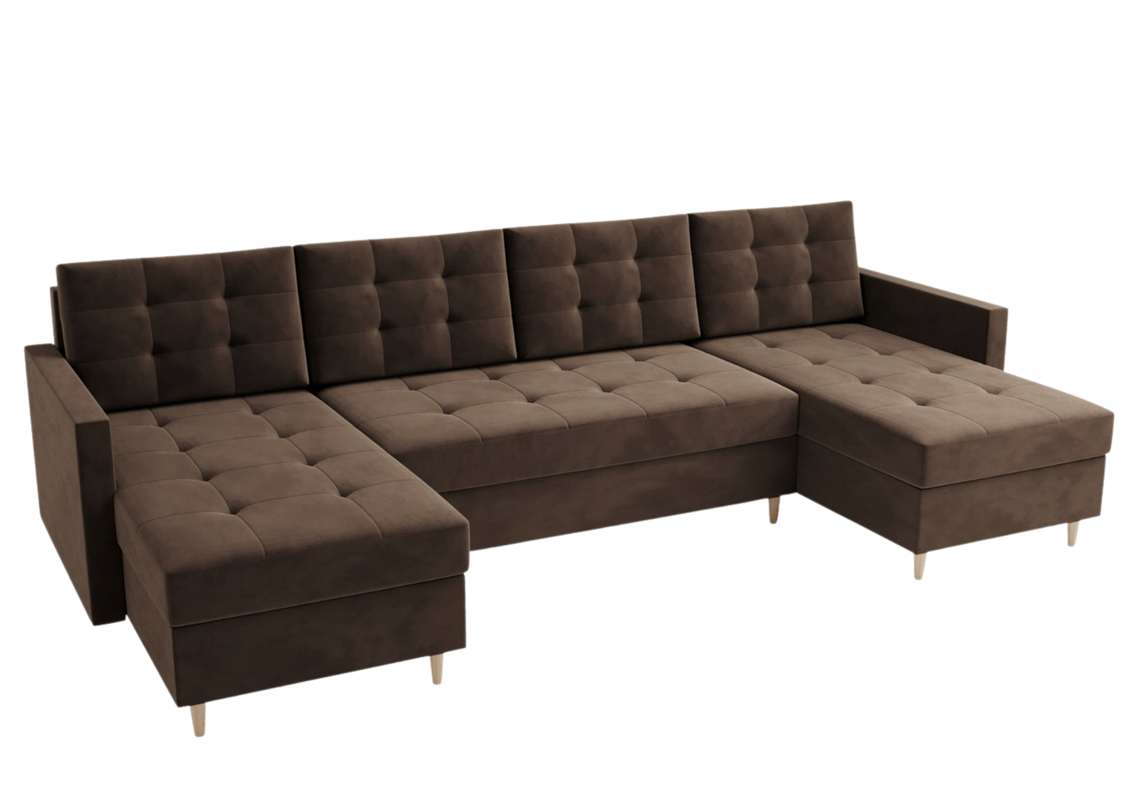 ⭐️Narożnik VIDO U Brązowy Rozkładany Funkcja Spania 3 Schowki Salon Welur