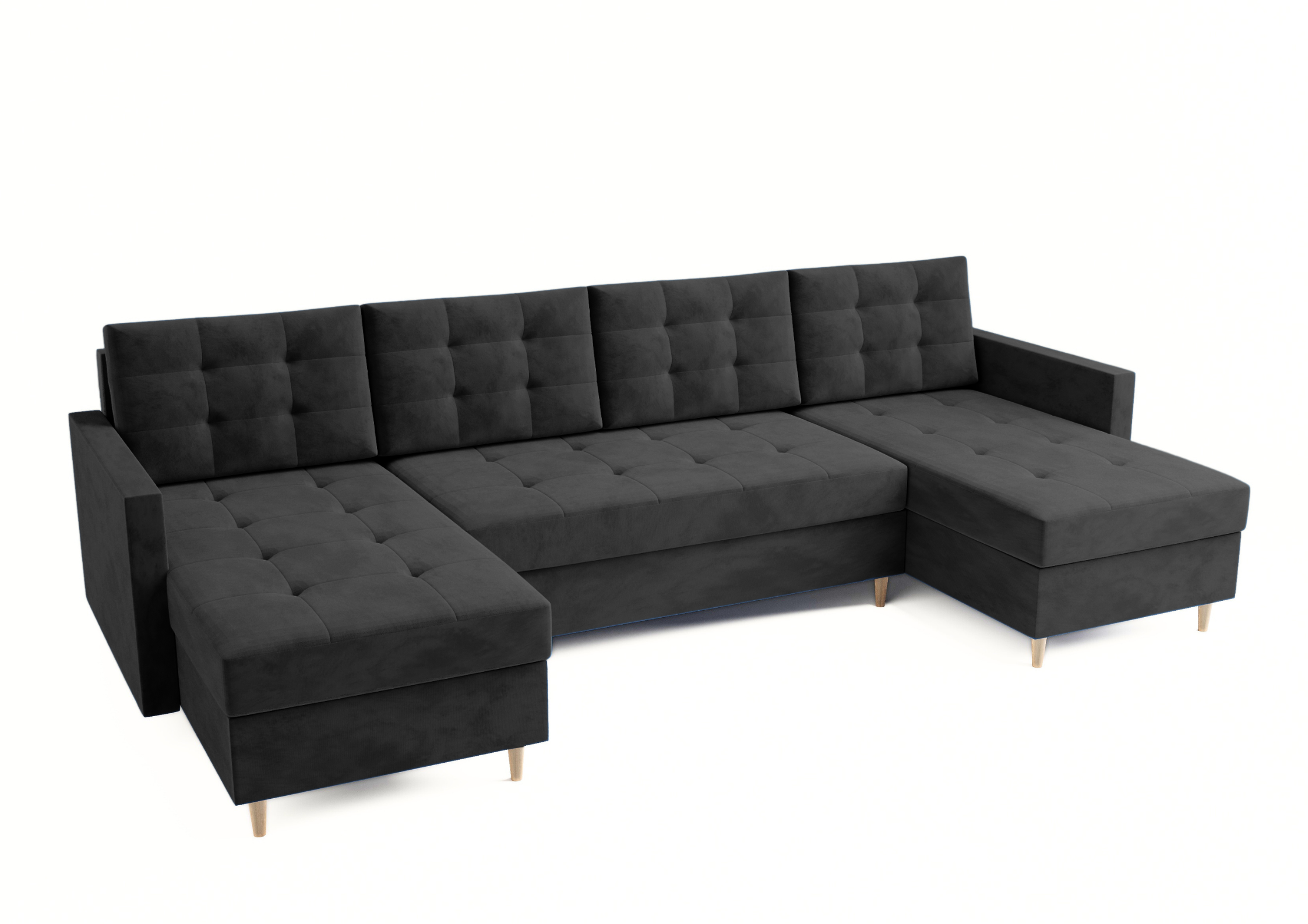 ⭐️Narożnik VIDO U Czarny Rozkładany Funkcja Spania 3 Schowki Salon Welur