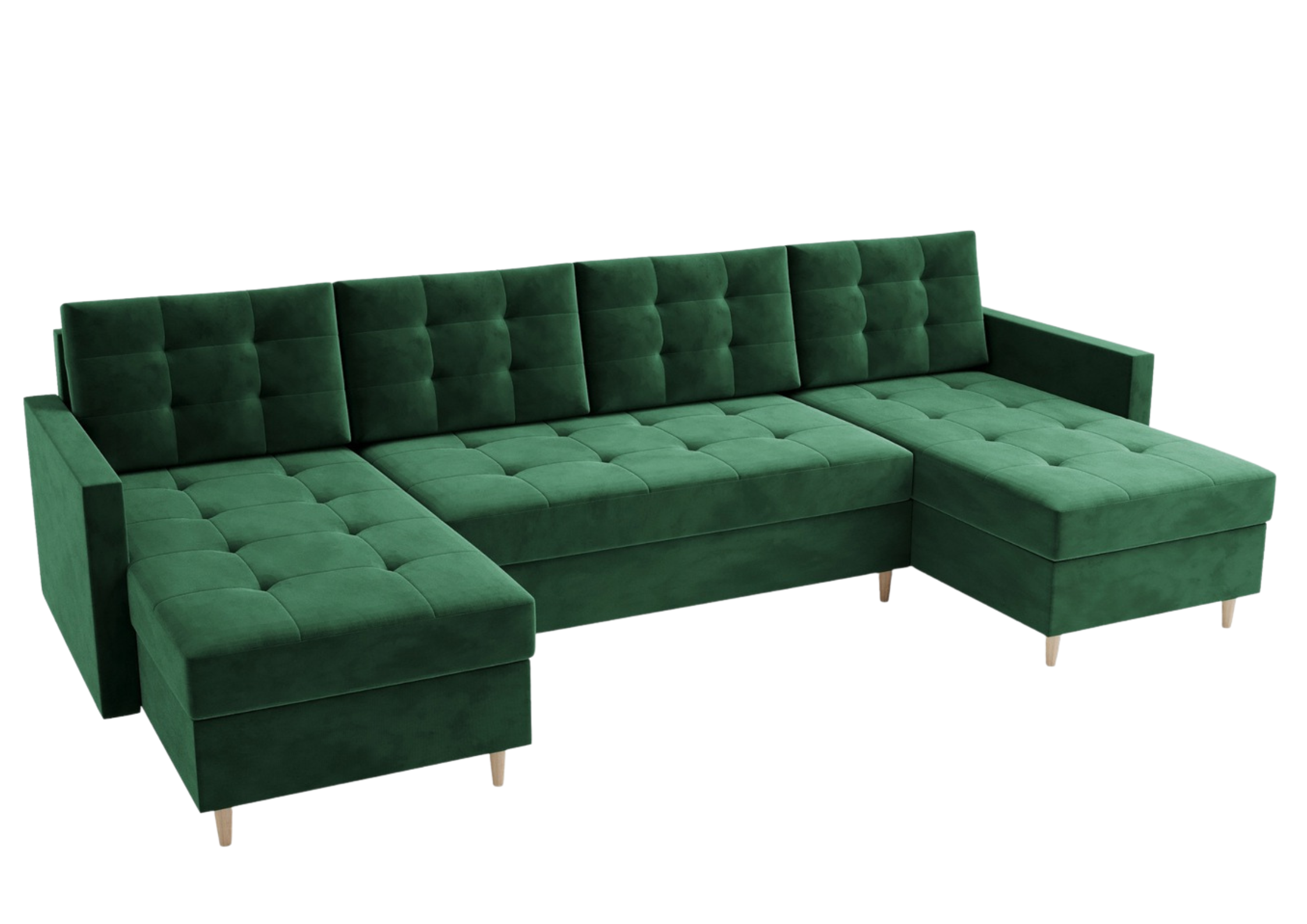 ⭐️Narożnik VIDO U Zielony Rozkładany Funkcja Spania 3 Schowki Salon Welur