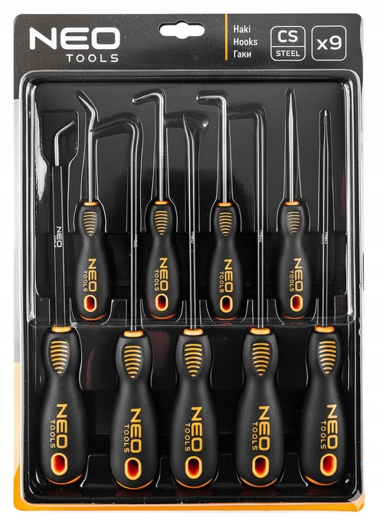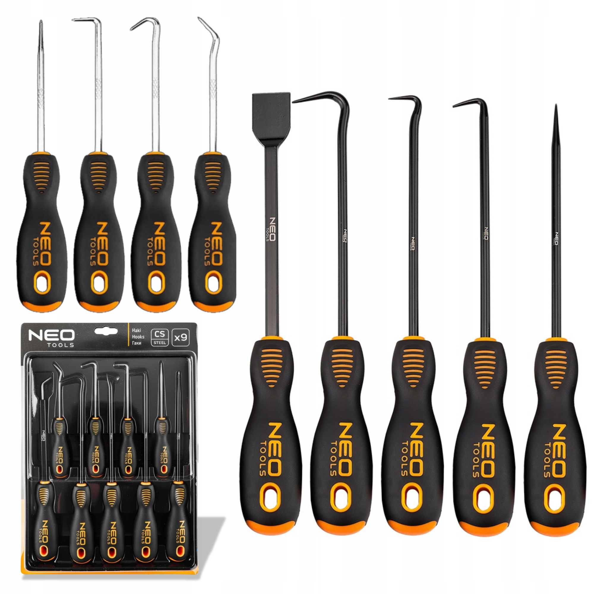 NEO ZESTAW HACZYKÓW Z RĘKOJEŚCIĄ 9 szt. DŁUGIE HAKI DO USZCZELEK ORINGÓW