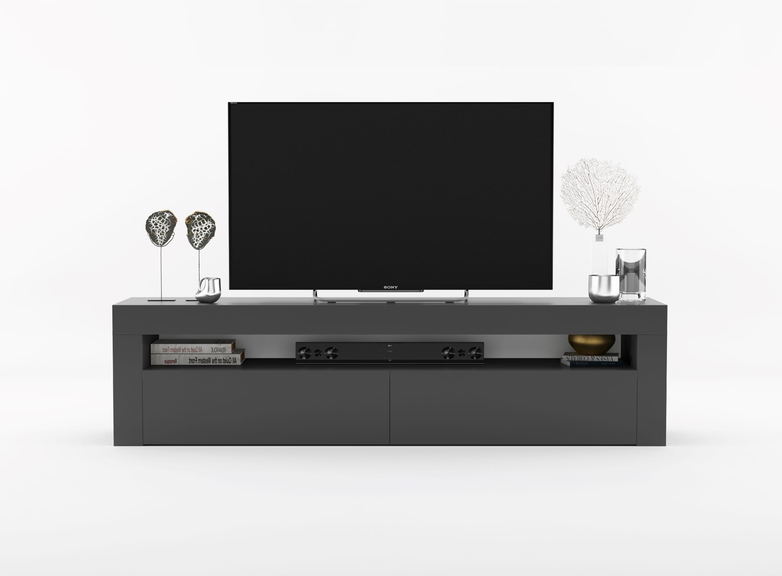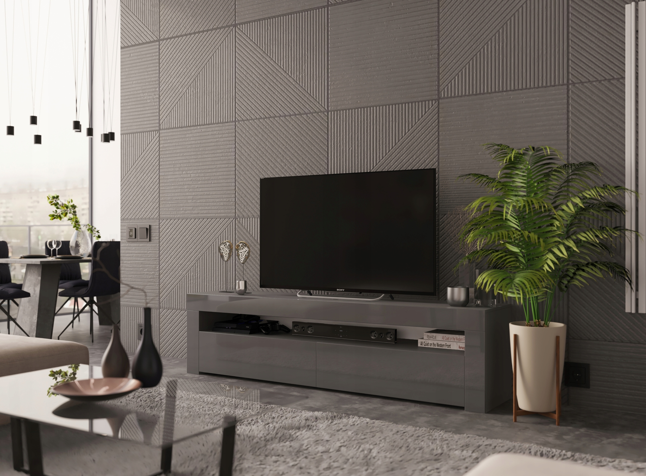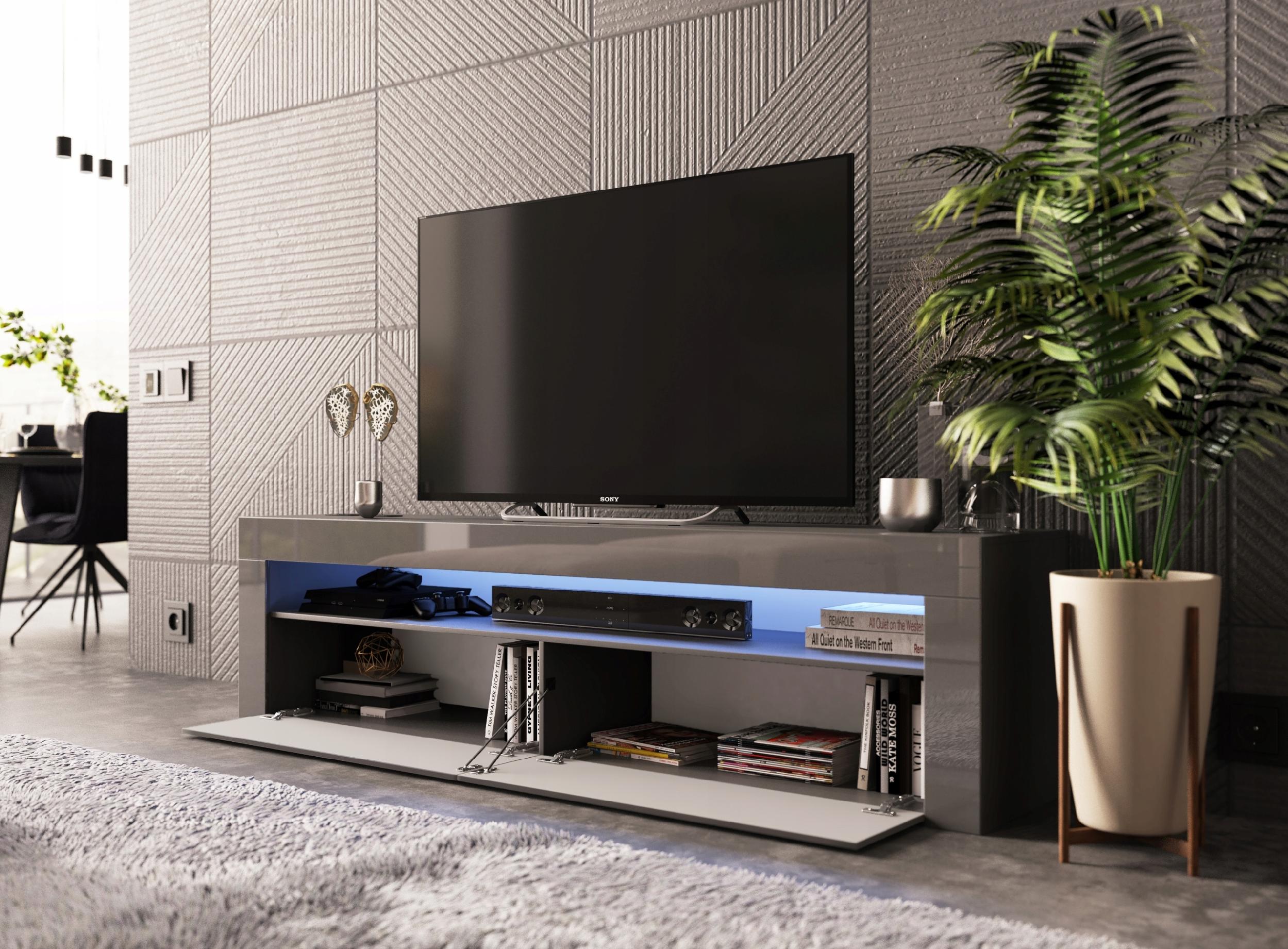 Nowoczesna Szafka RTV komoda Grafit połysk 155 cm