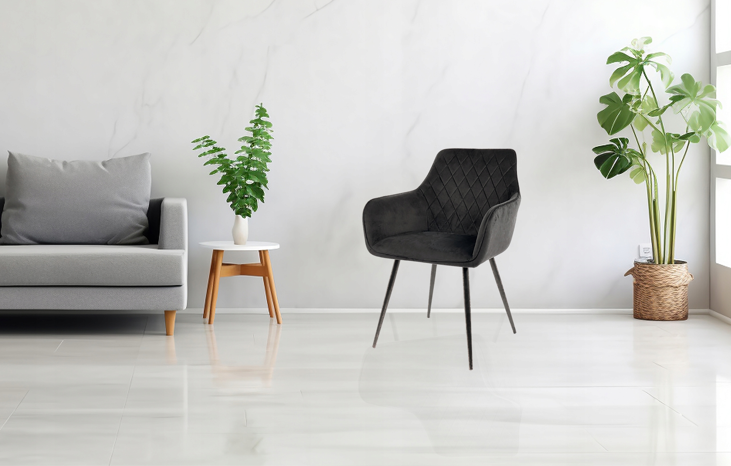 ✔️ Siedzisko wypełnione miękką pianką, tapicerowane aksamitną welwetową tkaniną.