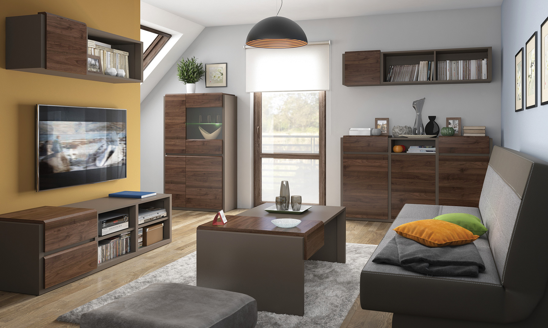 Modułowy system Author w wyjątkowy sposób łączy w sobie elegancję i nowoczesny minimalizm. Prostą, geometryczną linię mebli przełamuje subtelny dekor drewna, sprawiając, że przestrzeń salonu czy jadalni staje się ciepła i przytulna.