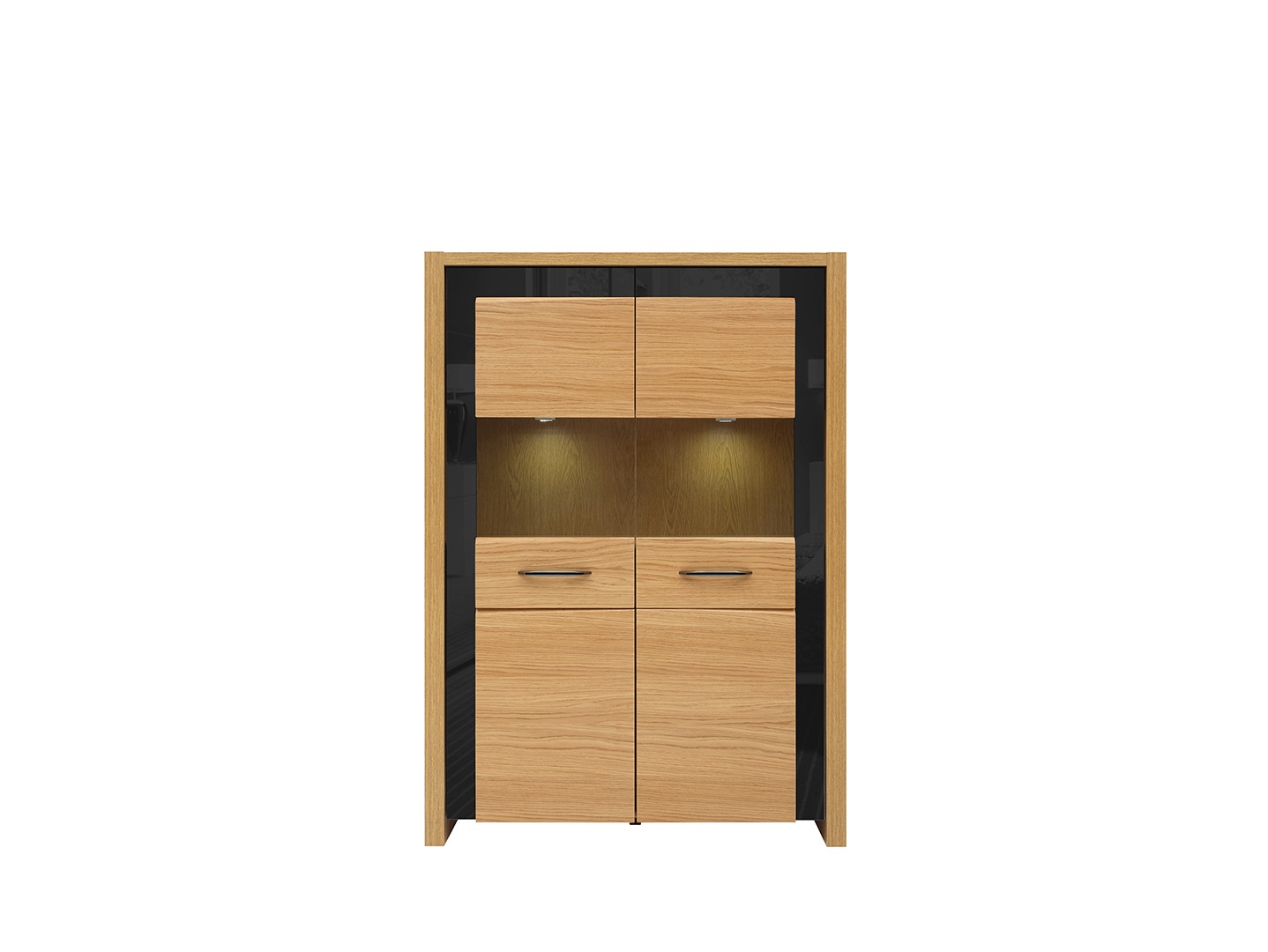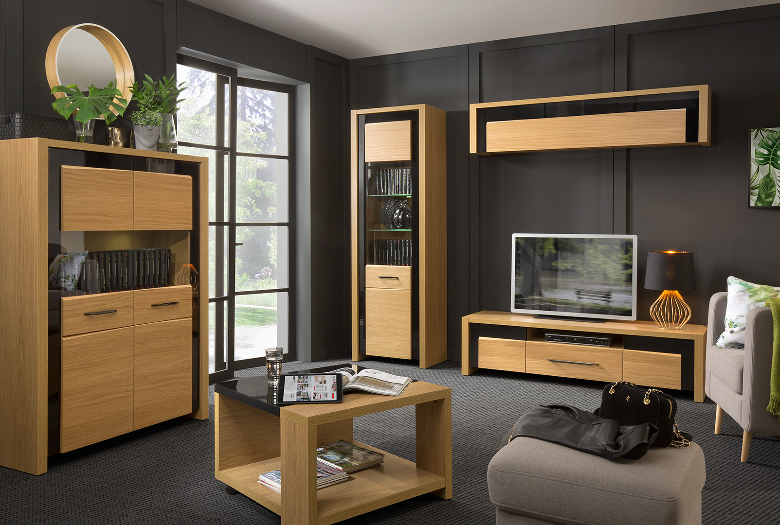 Atutem kolekcji są dekoracyjne akcenty wykonane z czarnego szkła hartowanego. Dzięki procesowi hartowania materiał cechuje się zwiększoną odpornością na zarysowania i stłuczenia, dlatego będzie prezentować się wyjątkowo przez długi czas. Czarne, lśniące ramy tworzą wyjątkową oprawę dla prostych form i eleganckich uchwytów, które zapewniają wygodny dostęp do wnętrza mebli.
