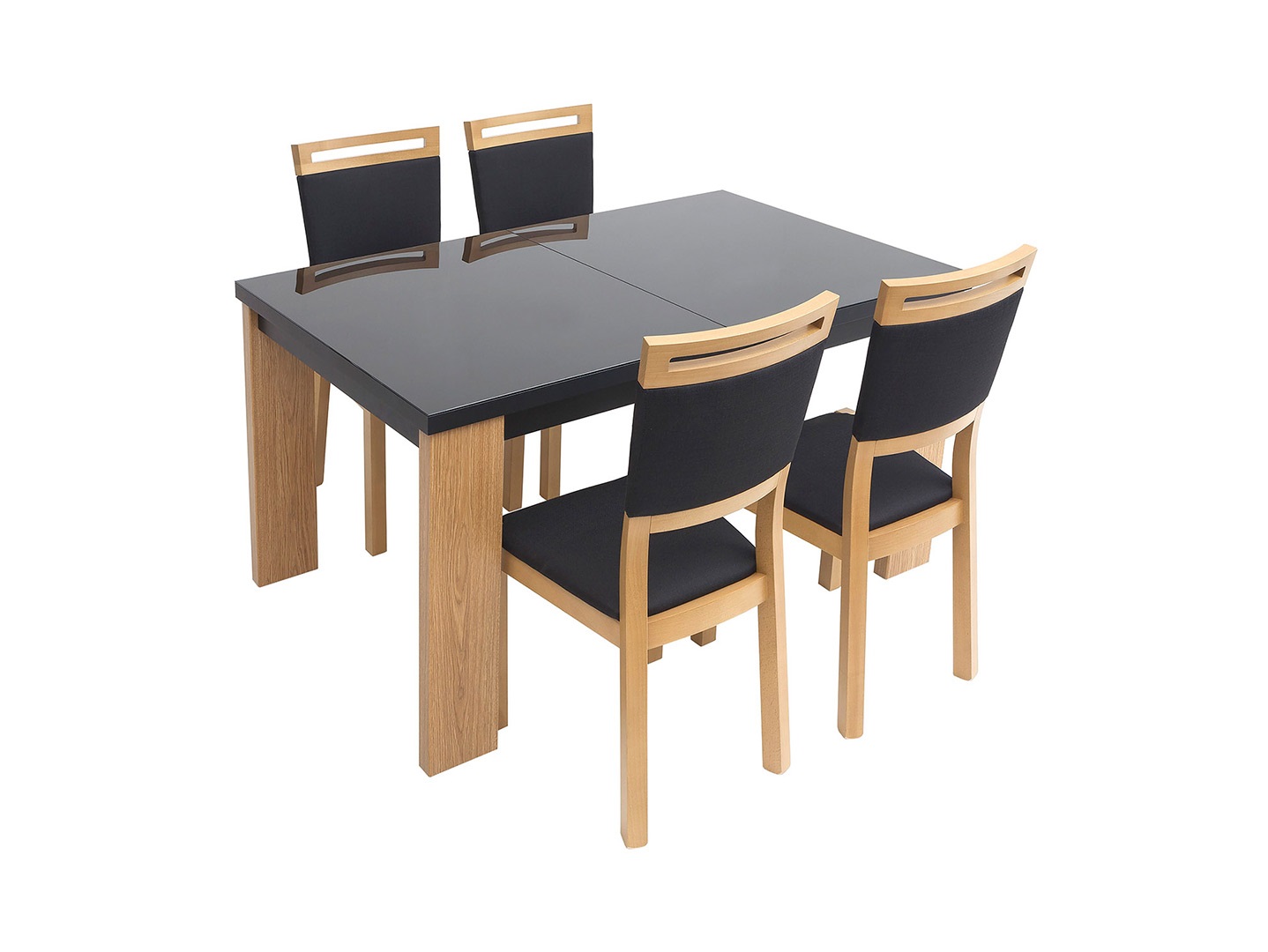 Kolekcja Arosa to meble, które idealnie sprawdzą się w salonie oraz jadalni. Poszczególne elementy, takie jak szafki, komody i witryny można swobodnie ze sobą łączyć i zestawiać, tworząc własne konfiguracje. Uwagę gości przyciągnie elegancki stół z rozkładanym blatem wykonanym z czarnego szkła hartowanego oraz stylowe krzesło z miękkim tapicerowanym siedziskiem i oparciem.