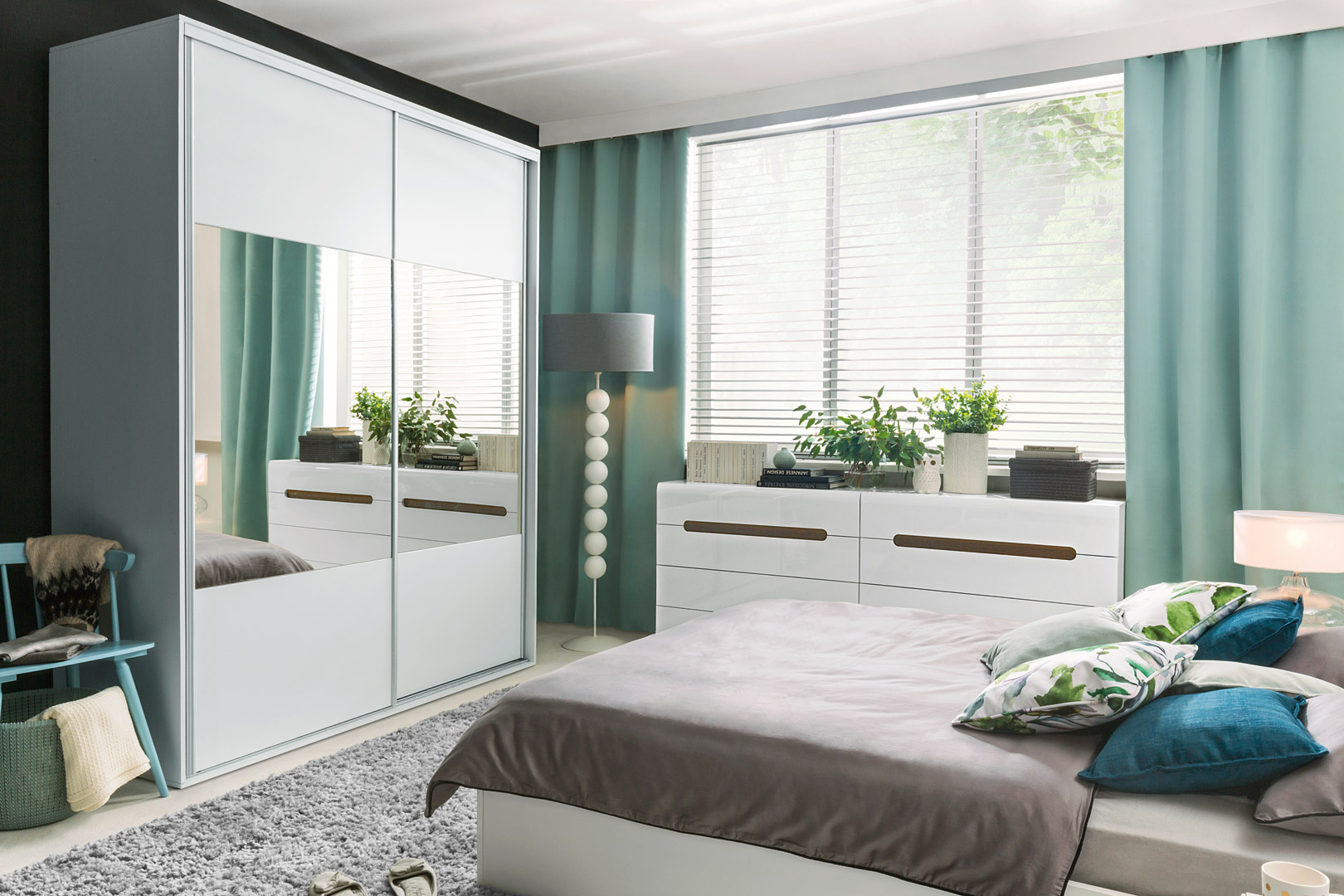 Wiele możliwości konfiguracji sprawia, że możesz samodzielnie zaprojektować wygląd własnej szafy Nadir. W zależności od tego, czego potrzebujesz możesz wybrać drzwi wyposażone w wbudowane lustra lub bez. Do wyboru masz również kilka opcji kolorystycznych, które można ze sobą swobodnie łączyć – ciepły dąb san remo jasny, matową lub lśniącą biel, a także czekoladową barwę wenge.