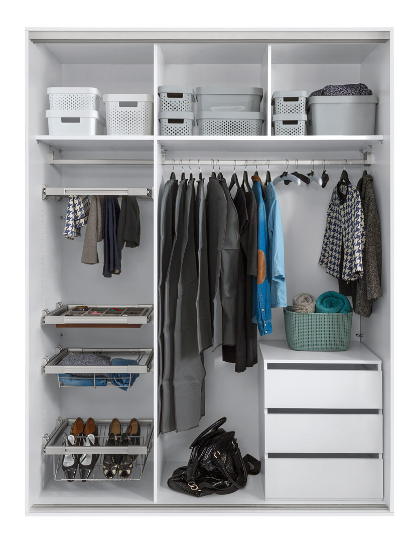 Wielkość Twojej szafy ma duże znaczenie, ale równie ważne jest to, jak zorganizowana jest wewnątrz. Dobór odpowiedniego wyposażenia pozwoli zachować większy porządek i z łatwością znaleźć każdą rzecz. Szafy Nadir dają wiele możliwości indywidualnej organizacji wnętrza: