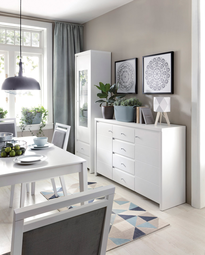 System Karet daje wiele możliwości zestawiania i łączenia ze sobą poszczególnych elementów, dzięki czemu każde domowe wnętrze można urządzić zgodnie z własnymi potrzebami. Idealne meble dla siebie można wybrać spośród kilkunastu modułów. W sypialni swoją funkcję doskonale spełnią szafki nocne, łóżka w trzech wymiarach do wyboru oraz pakowna szafa - dwu lub trzydrzwiowa, z lustrem lub bez. Jadalnię idealnie zagospodaruje prosty stół, tapicerowane krzesła i elegancka witryna. Z kolei w salonie swoją rolę doskonale odegrają pakowne komody, szafa RTV oraz wiszące półki i szafki. Meble Karet to także kolekcja stworzona z myślą o przedpokoju, dlatego można znaleźć w niej szafkę na buty, duże ścienne lustro, a także funkcjonalny wieszak.