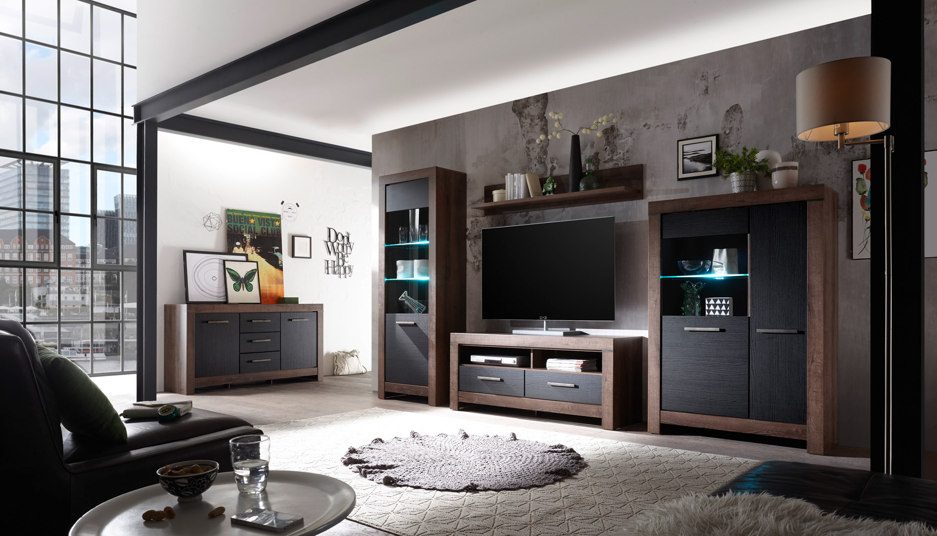 Balin składa się z pięciu uniwersalnych elementów stworzonych z myślą o klimatycznym wnętrzu salonu. Pierwsze skrzypce w tej kolekcji grają witryny – ich ciemne wnętrza zostały podkreślone delikatnym światłem LED, dzięki czemu, zwłaszcza wieczorową porą, prezentują się bardzo wdzięcznie i dostojnie. W kolekcji nie zabrakło również rozwiązań ułatwiających przechowywanie i organizację elektroniki. Pakowna komoda i zgrabna szafka RTV to meble, które powinny znaleźć się w każdym funkcjonalnym wnętrzu pokoju dziennego. Pomysłowym akcentem każdej aranżacji będą dostępne w kolekcji półki wiszące z pełnymi plecami. Elementy dobrze będą prezentować się zawieszone tuż nad komodą lub solo.