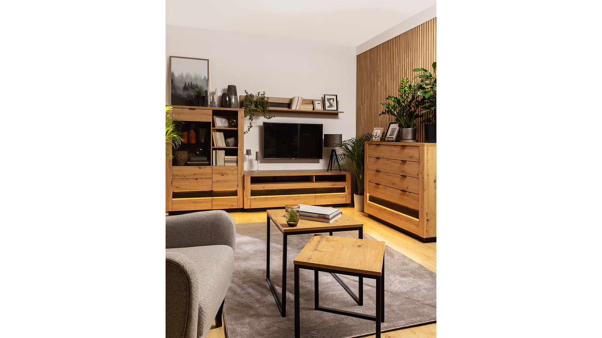 Ponadczasowy, solidny styl kolekcji Ostia sprawdzi się w wielu aranżacjach pokoju dziennego.