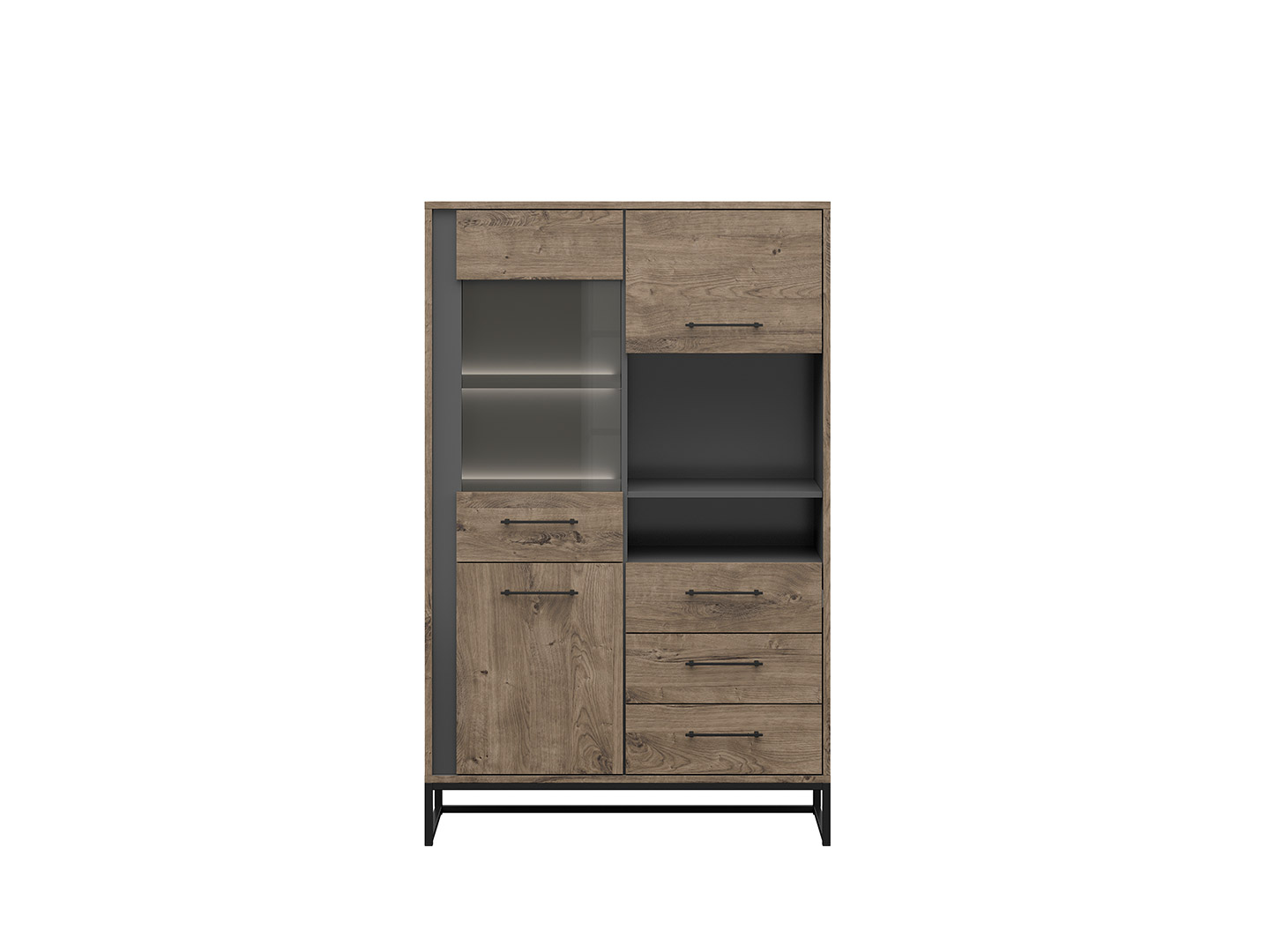 I nie ma się co dziwić! Ponadczasowa konstrukcja i praktycznie zaplanowana przestrzeń czyni meble funkcjonalnymi, a o takie właśnie chodzi. Czarne wybarwienie metalowych elementów oraz chłodna kolorystyka to tło dla ozdobnej, grafitowej listwy, która dodaje charakteru całości. Nie sposób pominąć akcesoria. Te, wyposażone w cichy domyk, czynią Twój salon cichym miejscem, idealnym do odpoczynku i relaksu.